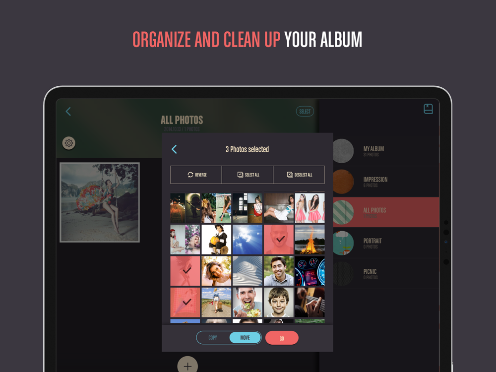Choose between two modes: albums in a classic motif and a convenient general list.