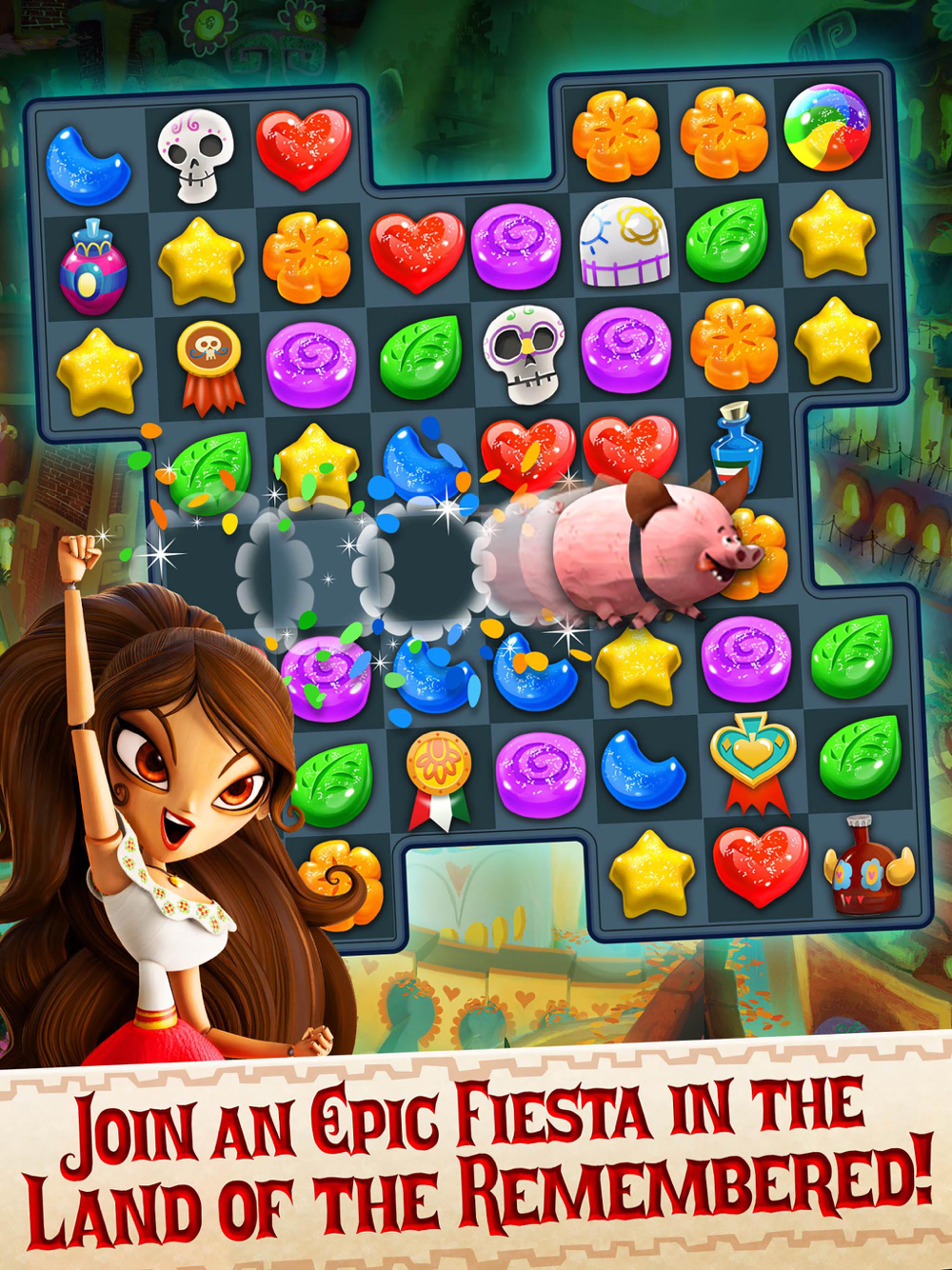 Match sugar candies and rainbow drops to master this fun and challenging match-3 puzzle adventure inspired by THE BOOK OF LIFE!