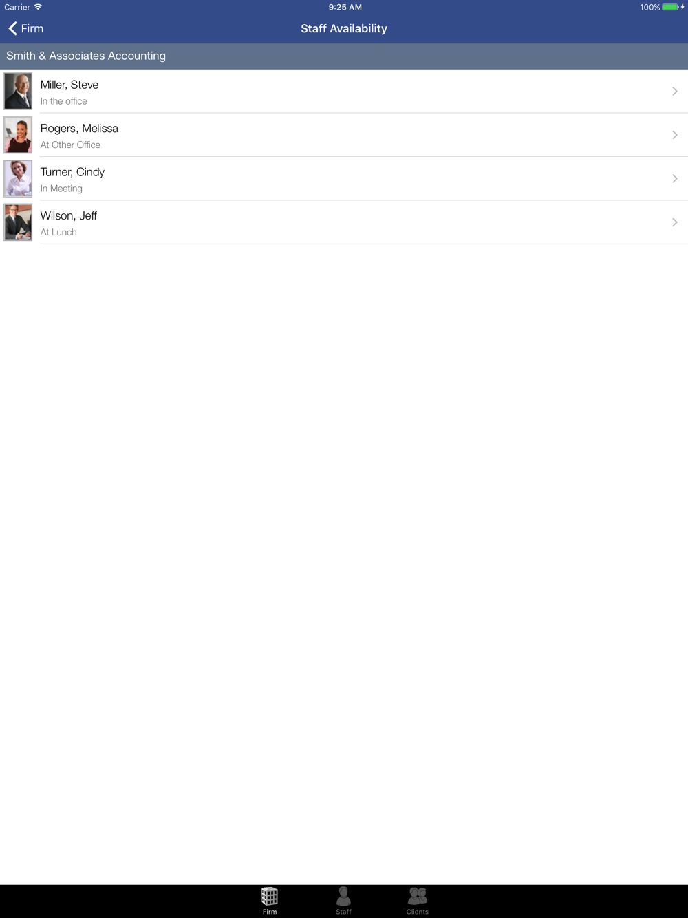 • Staff Availability – Check staff work load, phone messages, contact information, and notifications.