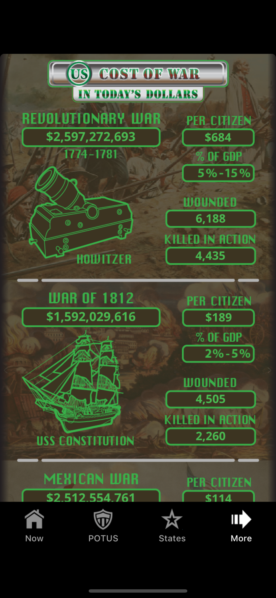 • See the Cost of every US War in Today's dollars