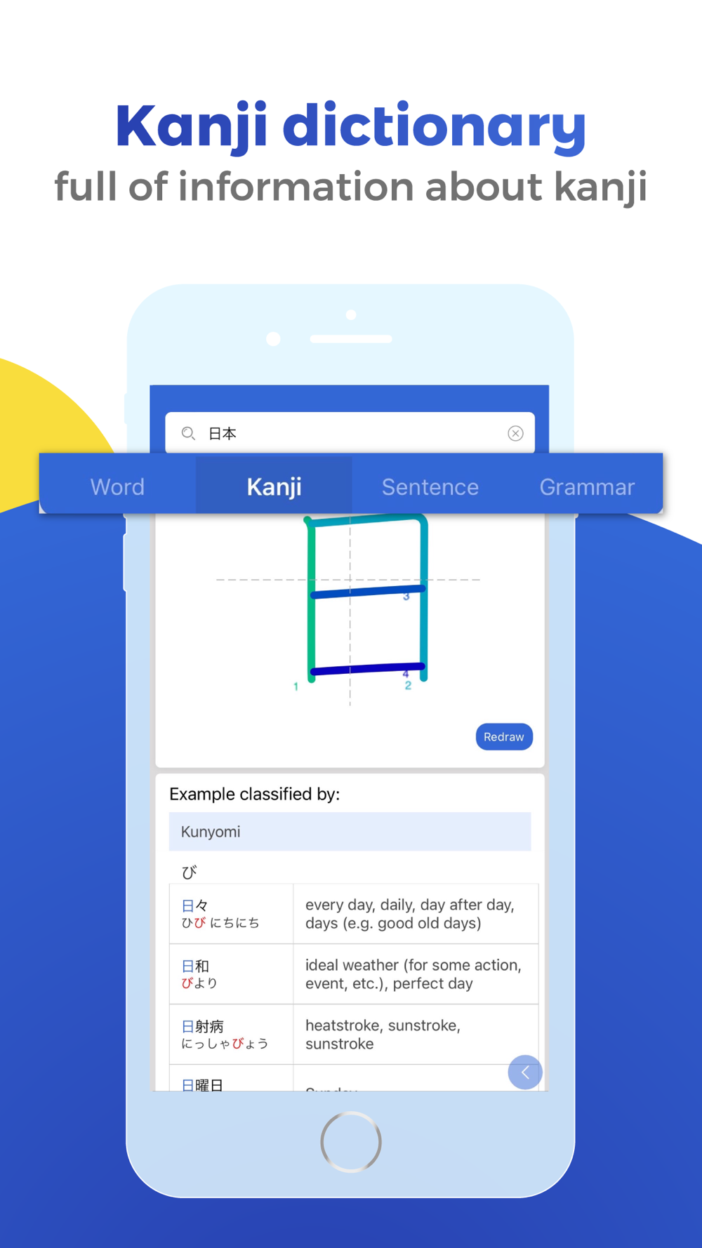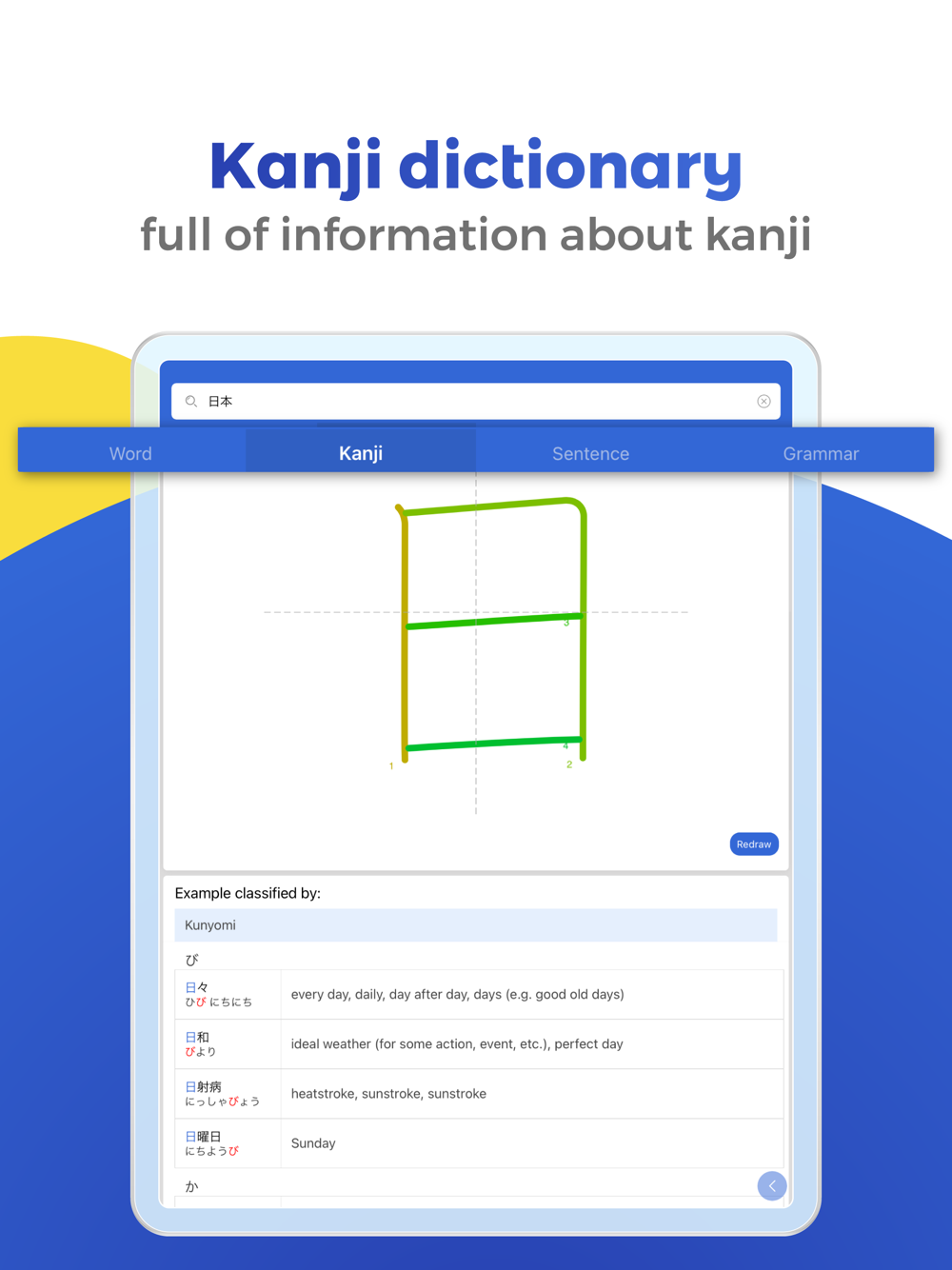 - Look up vocabulary, kanji, sentence patterns, grammar and specialties in Japanese, native language, romaji, hiragana with detailed explanations with examples