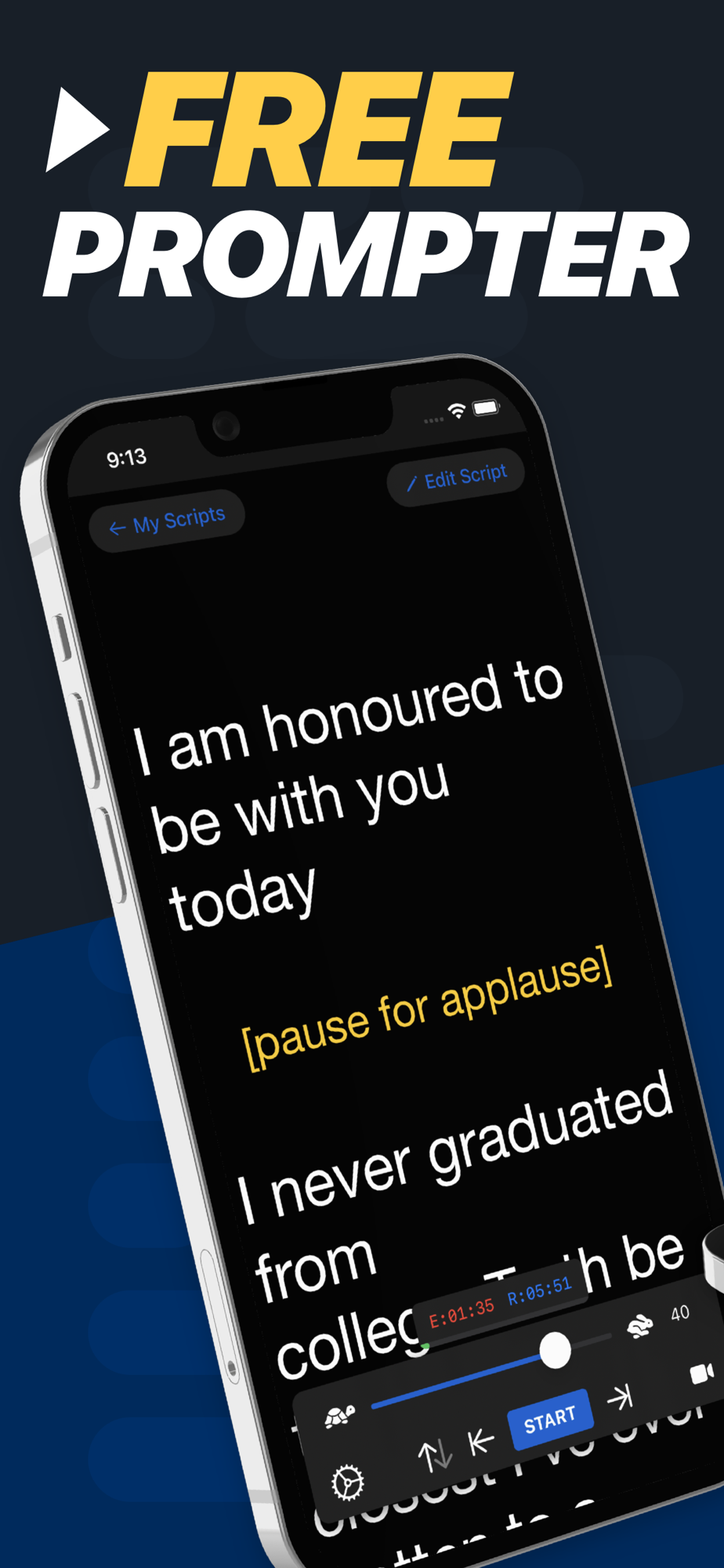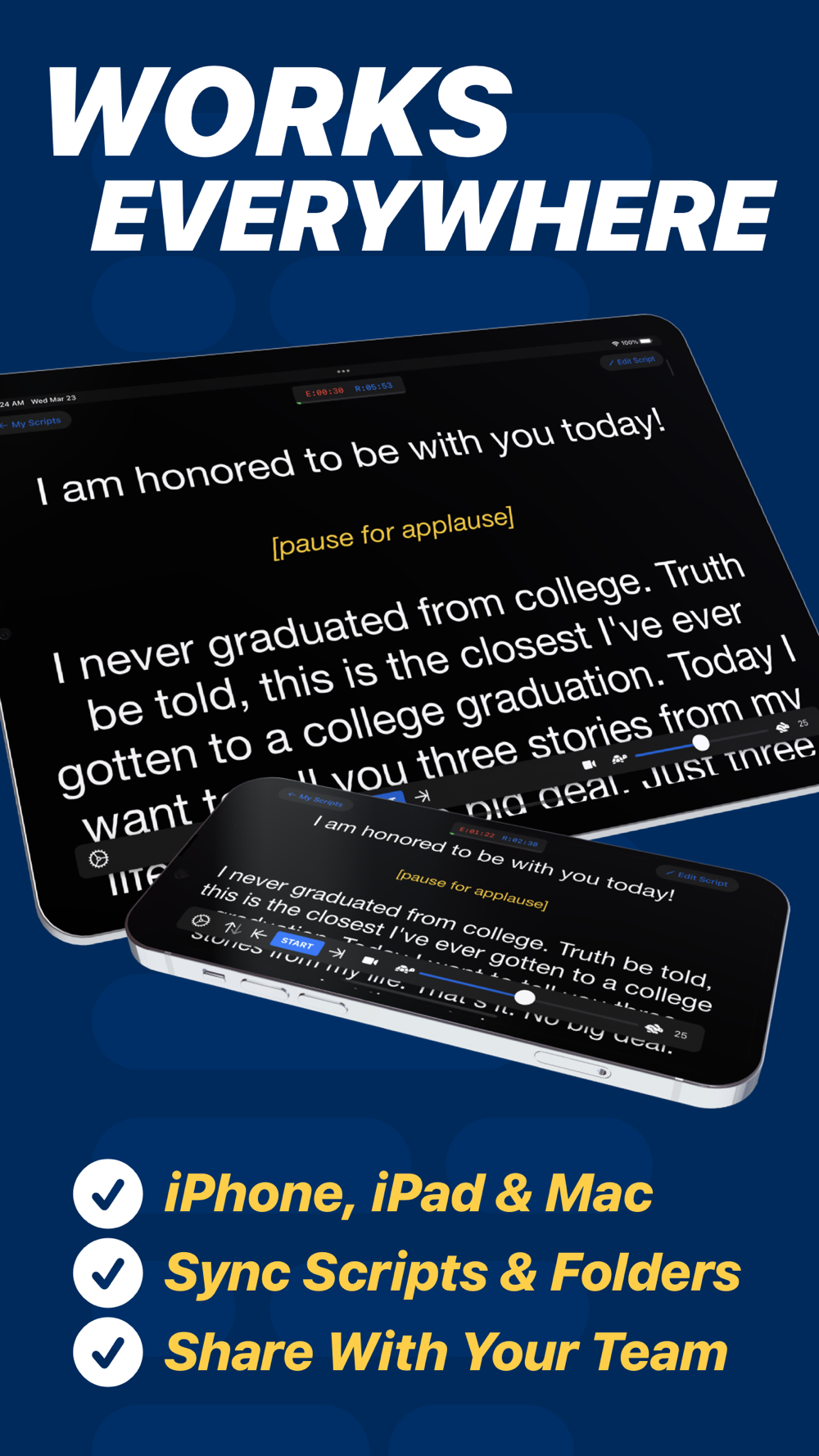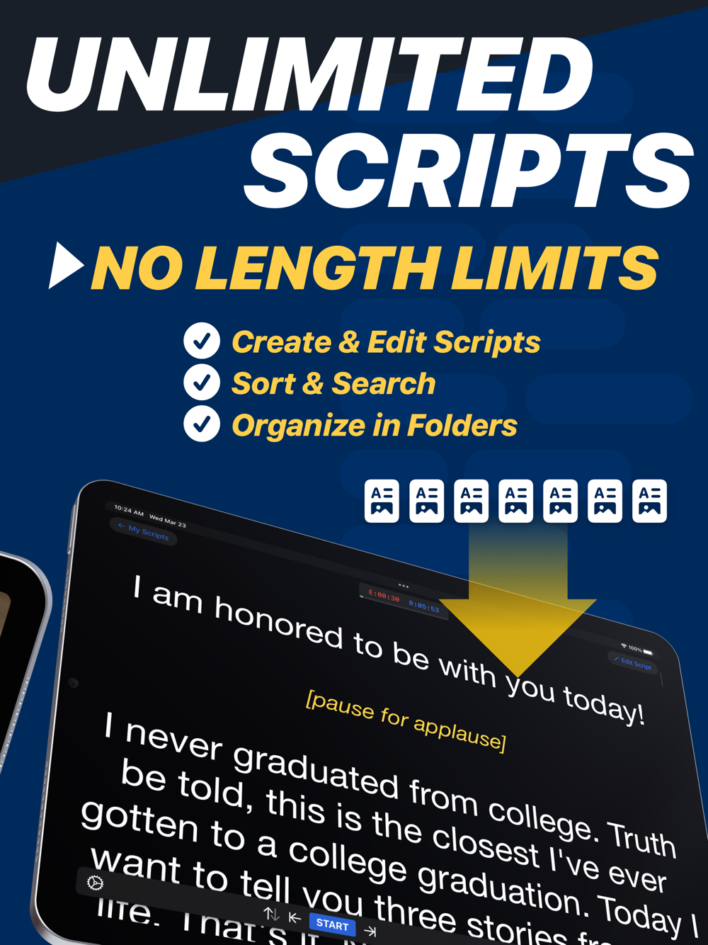 Teleprompter is designed for presentations, lectures, broadcasters, filmmakers, musicians & singers, business professionals, or any public speaking!
