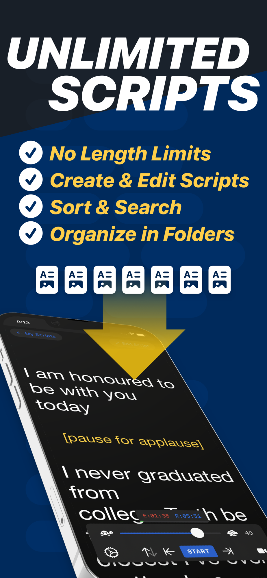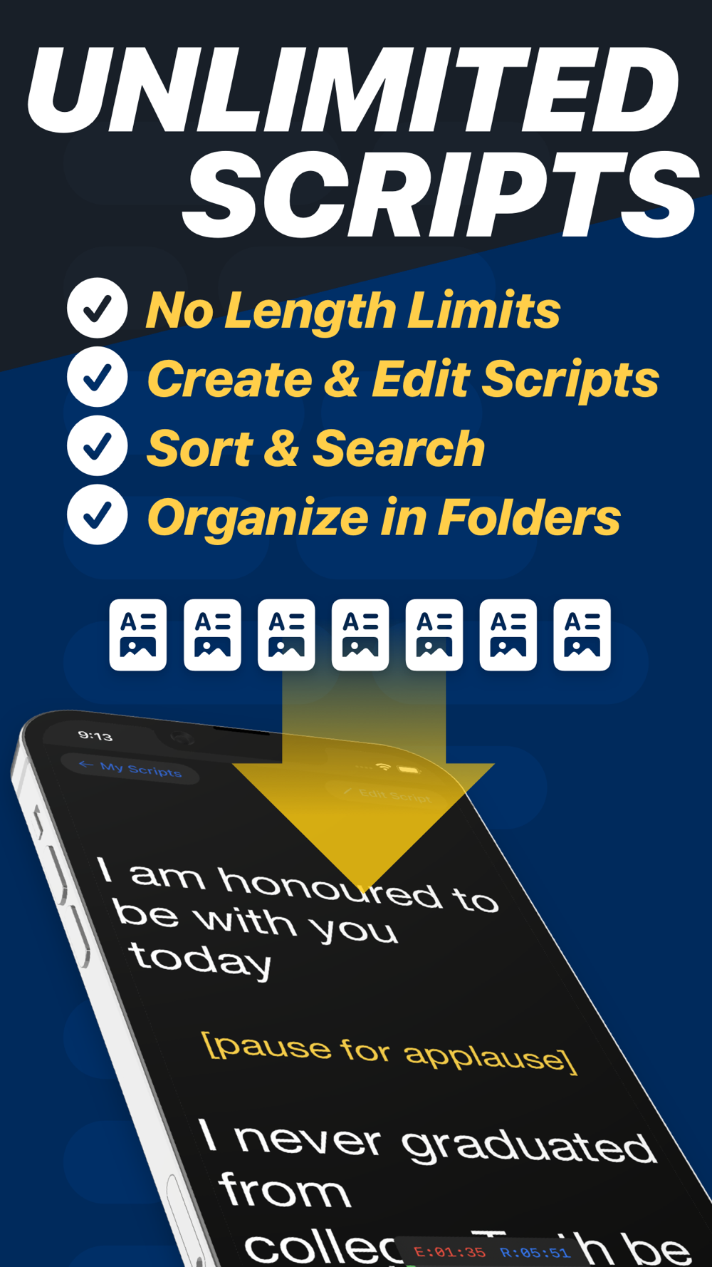 • Re-arrange your scripts by title, date or arrange them in a custom order