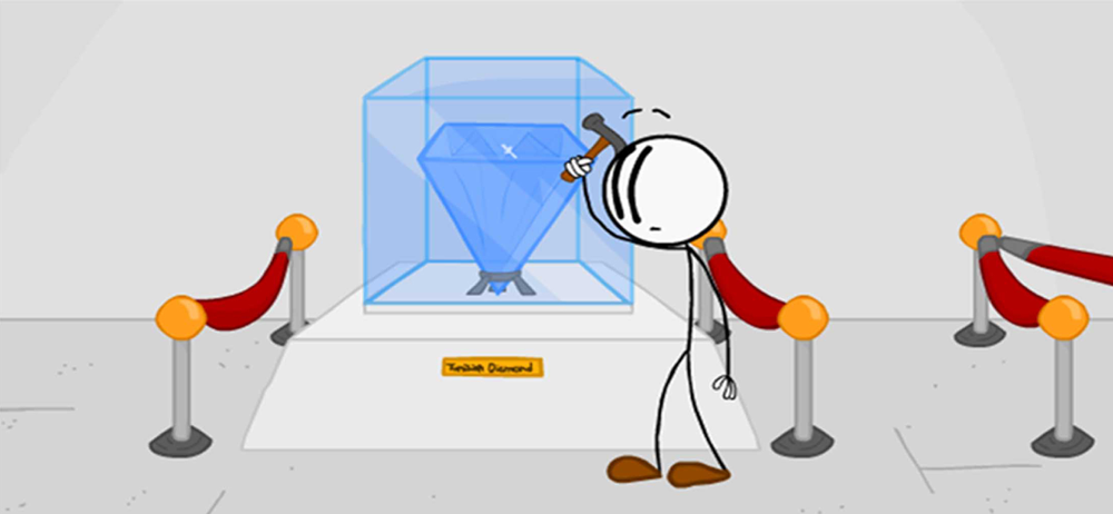 It's time to make some cash by Stealing the Diamond NOW! In Stealing The Diamond, you guessed it; you try to steal a diamond! An extremely large diamond at that! You have choices to make in your quest for theft! Will you rush in and risk everything or try to sneak your way to your prize? Whatever you decide, be careful as one wrong move will leave you without a diamond and maybe even less! Do you have what it takes to pull off the diamond heist and make it out alive? There are three different ways you can get the diamond and many more ways to fail. You can win the Aggressive way, the Undetected way or the Epic way.