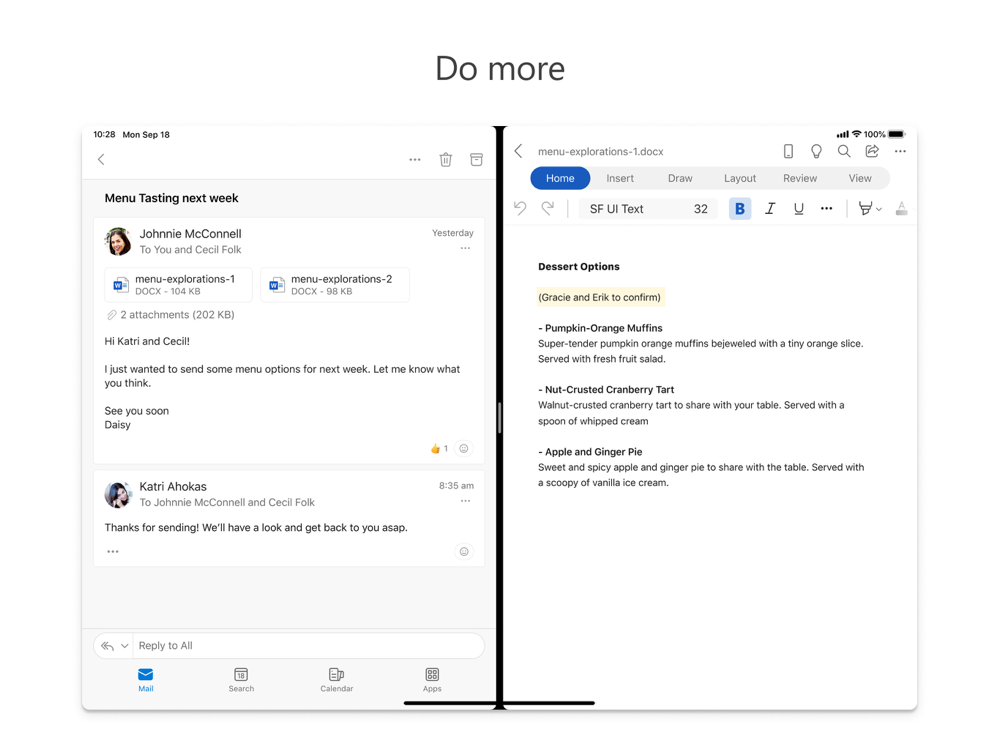 - Open Word, Excel, or other Office document attachments to edit them directly in the corresponding app and attach them back to an email.
