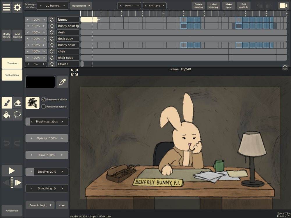 A fully featured hand drawn animation application for iPad. Made by an animator, for animators. Powerful enough for professionals, simple enough for beginners. Everything you need to create traditional hand drawn frame-by-frame animation, anywhere you go!