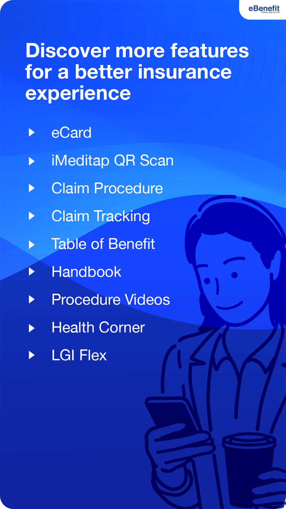 LippoInsurance ensures the simplicity of accessing your insurance services with eBenefit. All is accessible from your mobile phone. Medicare customers can access the following features on eBenefit app:
