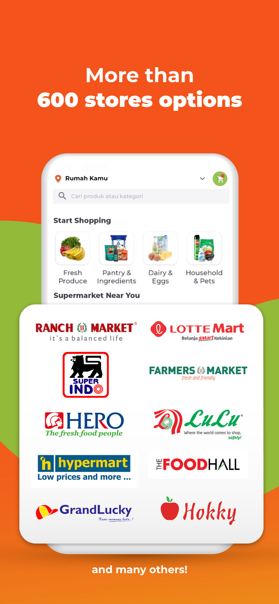 • Delivery from local stores: Grand Lucky, Lotte Mart, Superindo, Hypermart Online & more