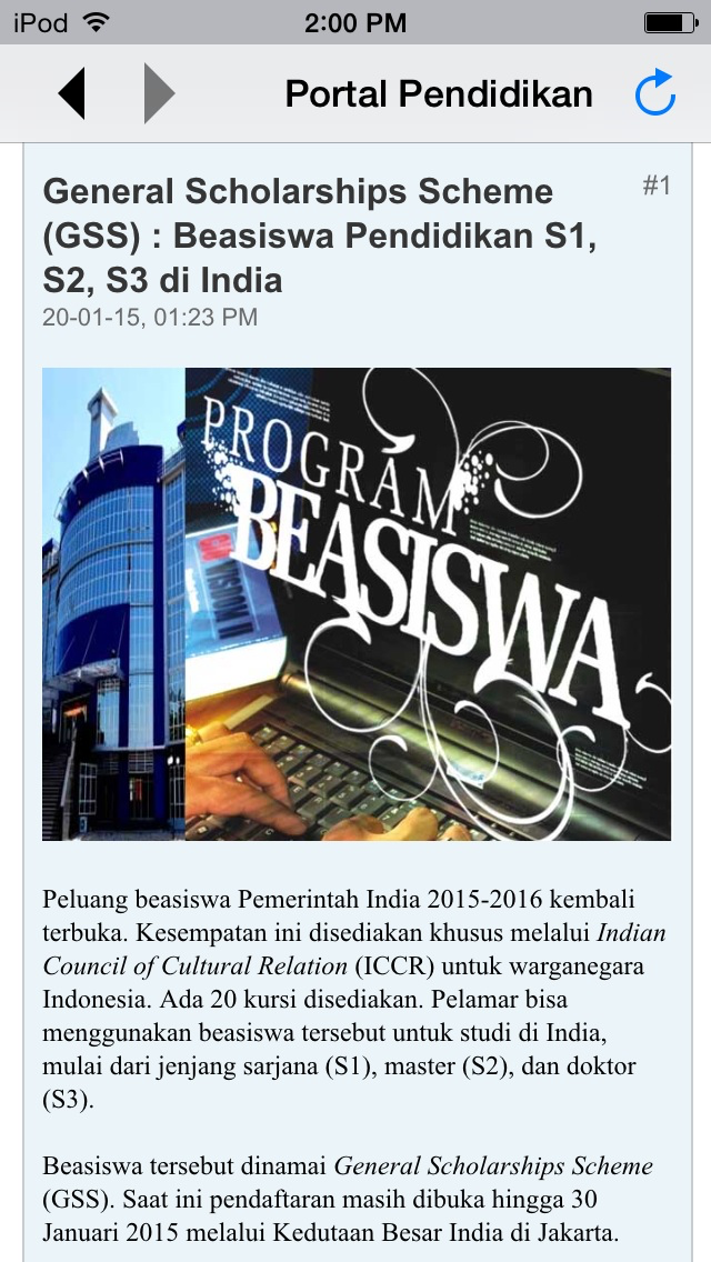 Aplikasi Portal Pendidikan bisa diakses dengan mudah melalui iPad, iPhone dan iPod touch, dan dengan mudah pula siapa saja bisa bergabung dengan forum di dalamnya untuk mendapatkan info terkini seputar dunia pendidikan, baik kabar seputar kurikulum baru, diskusi pendidikan, beasiswa bahkan untuk informasi lowongan pekerjaan.