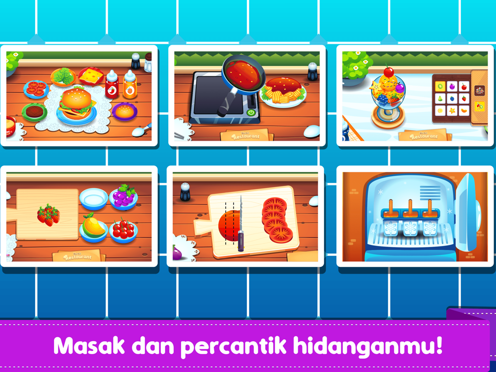 Marbel has a new business right now! Accompanied with Marbella, he run a restaurant. Are you ready to play in Marbel Restaurant? Let's get it on! so many menus available in restaurant! Here, you can be a master chef. Ain't sound great?
