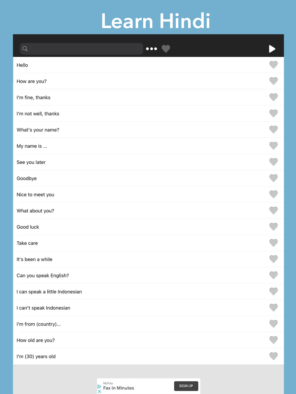 Learn Hindi is recorded using a native speaker and we have tried our best to be authentic in the pronunciation whilst ensuring it is easy to understand. Recommended app for tourists and business people visiting India.