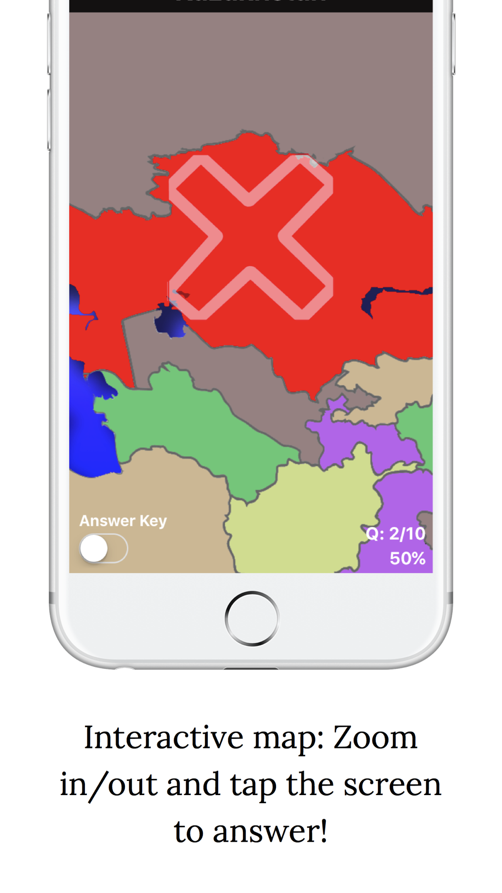 Learn the location of Asian countries, capitals, and flags with interactive learning: ZOOM, SCROLL, and TAP your way to learning the geography of Asia. No multiple choice, no keyboard, and, best of all…No word scrambles!