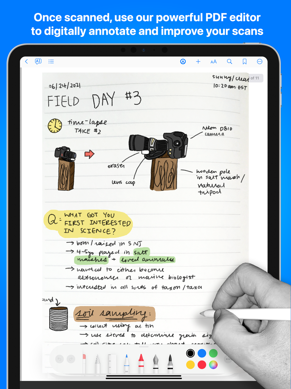 · Scanner provides a tactile, ink-on-paper experience due to the intuitive, quick, and pixel-perfect precise control of your Apple Pencil. It also offers handy features such as tilt and pressure sensitivity, and support for palm rejection.