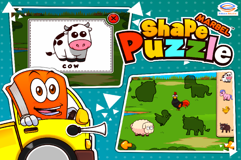 Marbel Shape Puzzle - Aplikasi pendidikan khusus untuk anak-anak usia 2 hingga 6 tahun. Menyusun puzzle merupakan kegiatan yang menyenangkan bagi anak-anak. Lewat kehiatan menyusun puzzle, anak-anak bisa merlatih meningkatkan ketelitian dan kesabaran. Hal ini sangat menunjang perkembangan otak kiri mereka. Bersama Marbel Shape Puzzle, kegitaan menusun puzzle menjadi lebih menyenangkan. Tersedia lebih dari 40 puzzle yang siap untuk disusun. Bersama Marbel Shape Puzzle, anak-anak akan dikenalkan pada dunia belajar yang lebih menyenangkan. Selesai belajar, mereka bisa memainkan beberapa permainan edukasi yang menarik untuk menguji kemampuan mereka. Sejauh apakah kemampuan si buah hati..?? Ayoo kita uji mereka lewat Marbel Shape Puzzle.