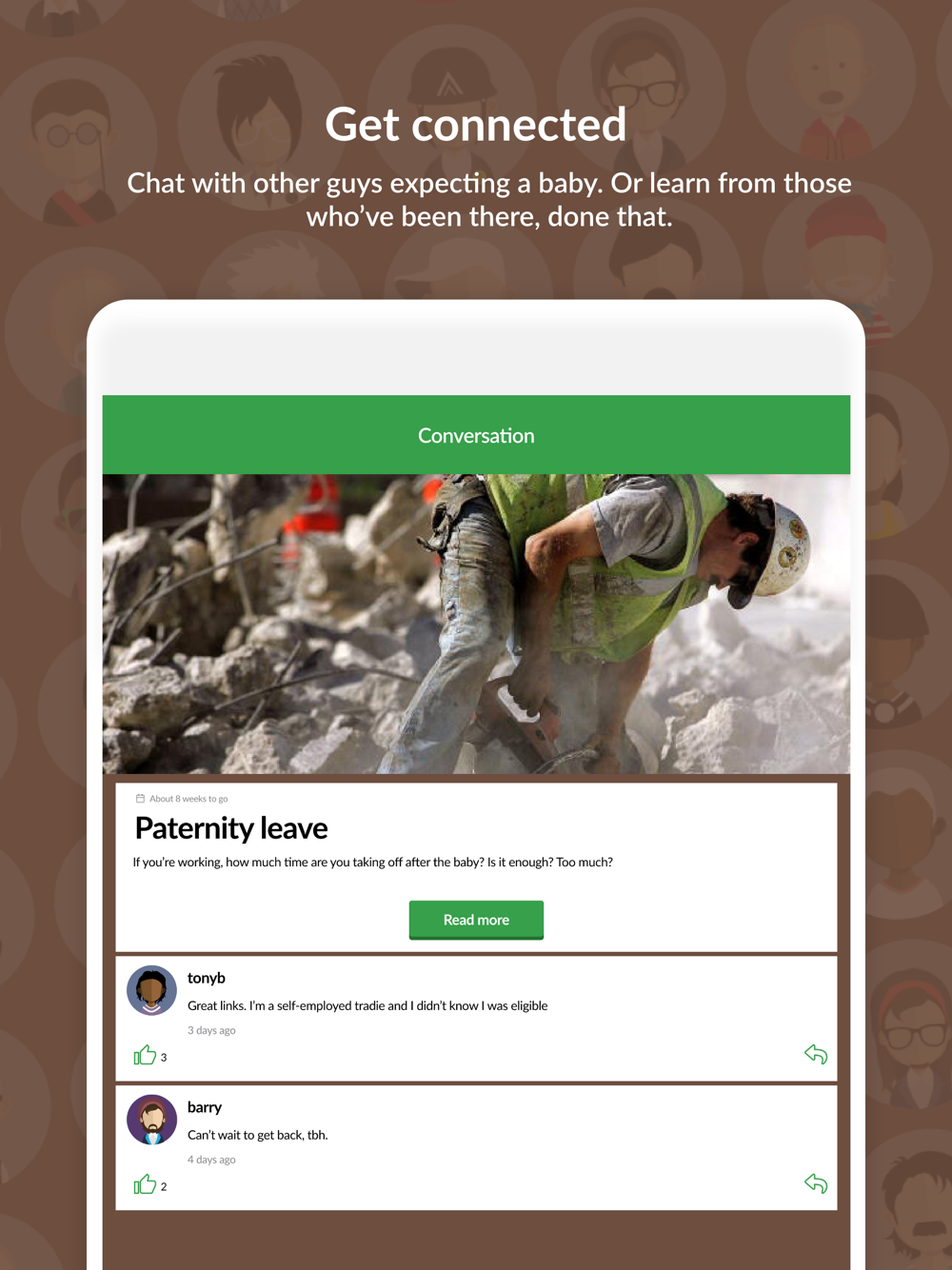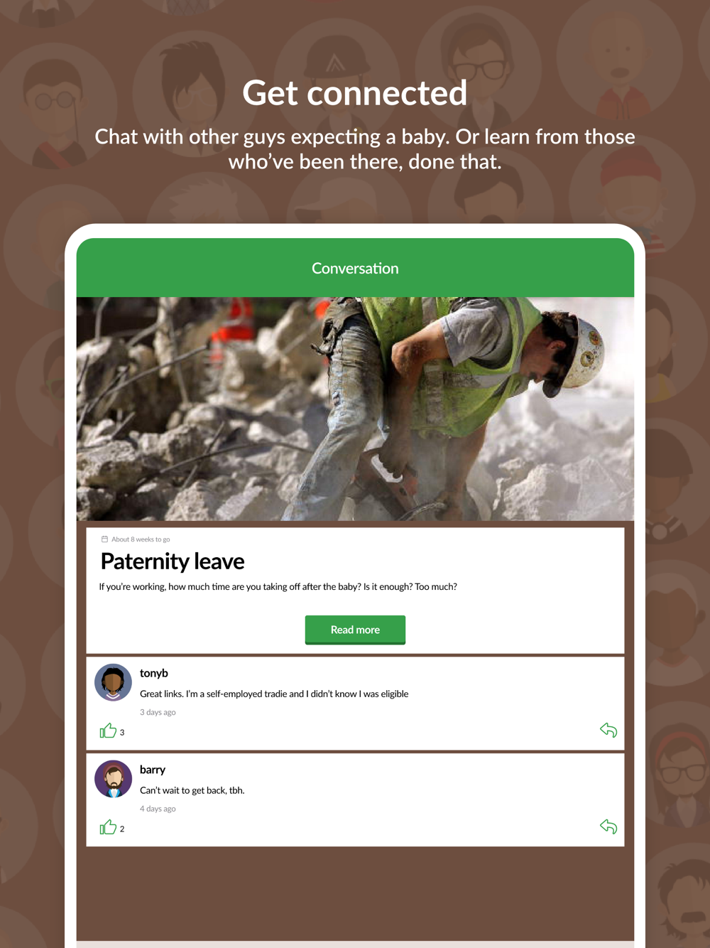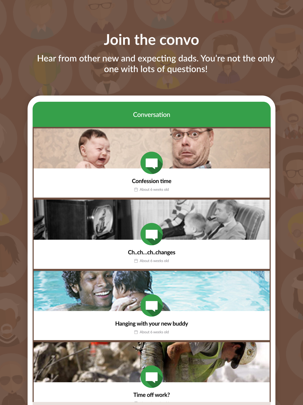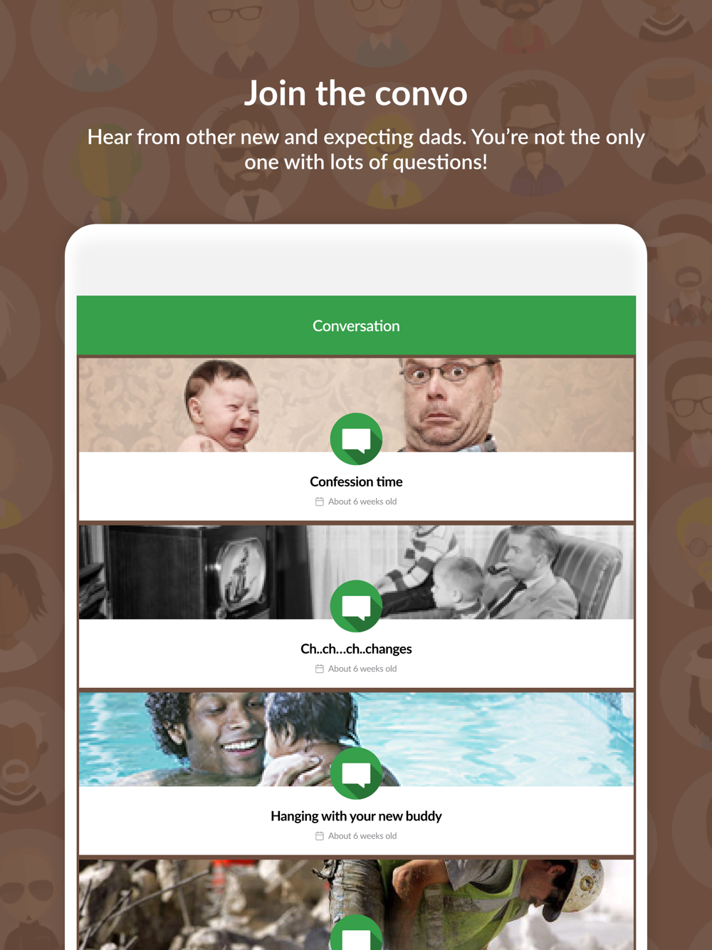Don’t go it alone. Learn from the experts, and talk to other new and expecting dads who are going through the same things you are.