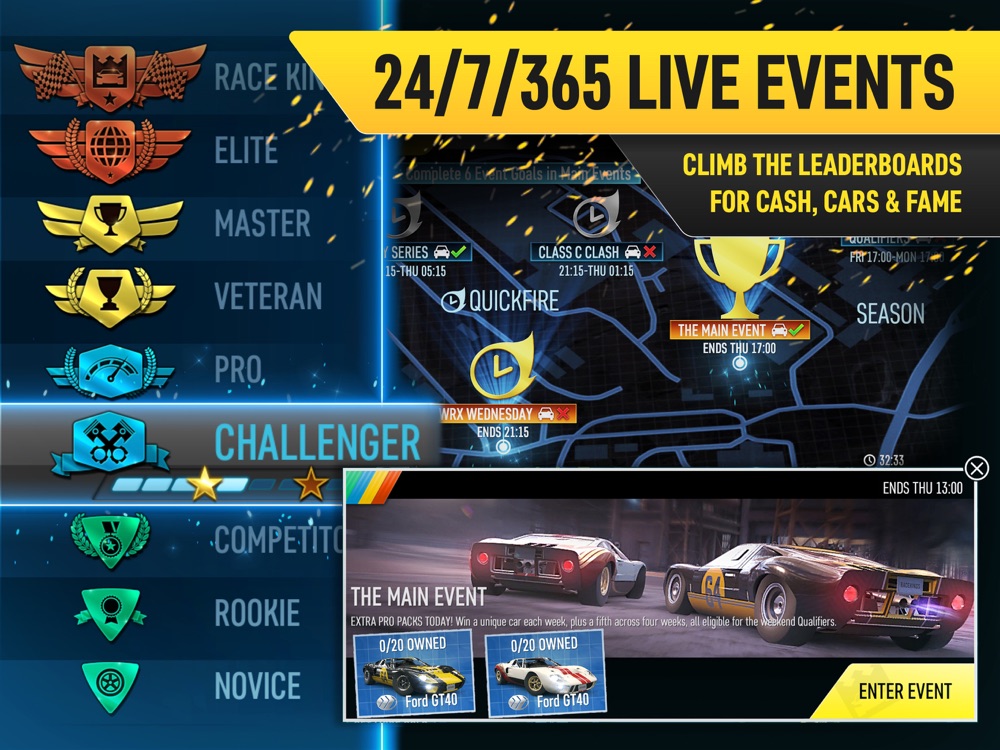 All live, all the time. Race against real-time online opponents, matched to your skill whether you’re a beginner or a tire-slaying legend. Tackle a real-time calendar of varied live Events, featuring dozens of tracks.