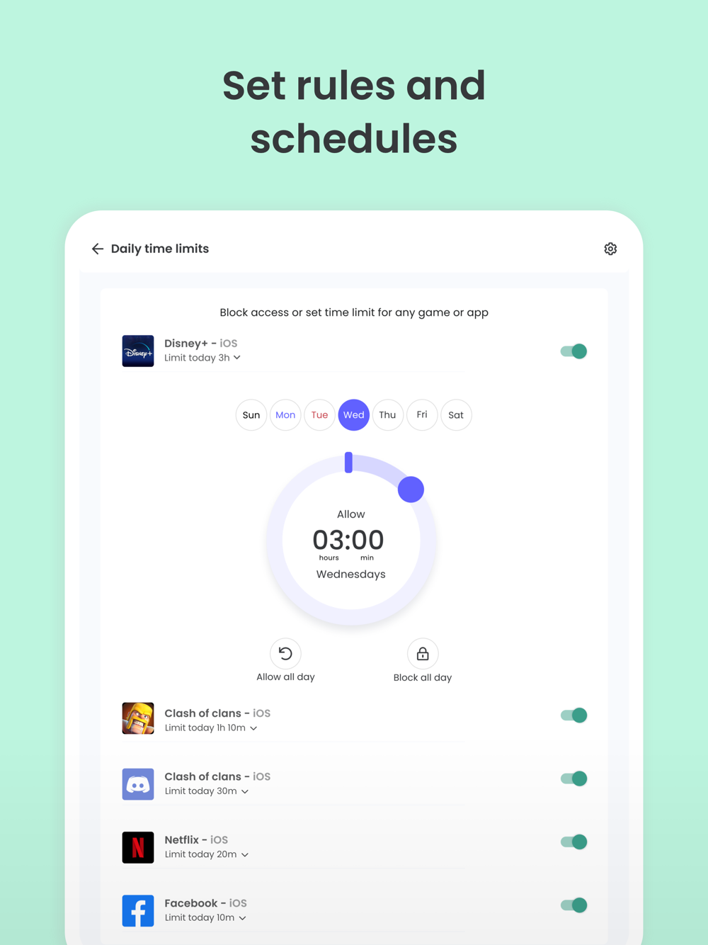 3. Together, the two apps allow you to seamlessly manage your child’s daily screen time allowance on linked mobile, tablet, or desktop devices.