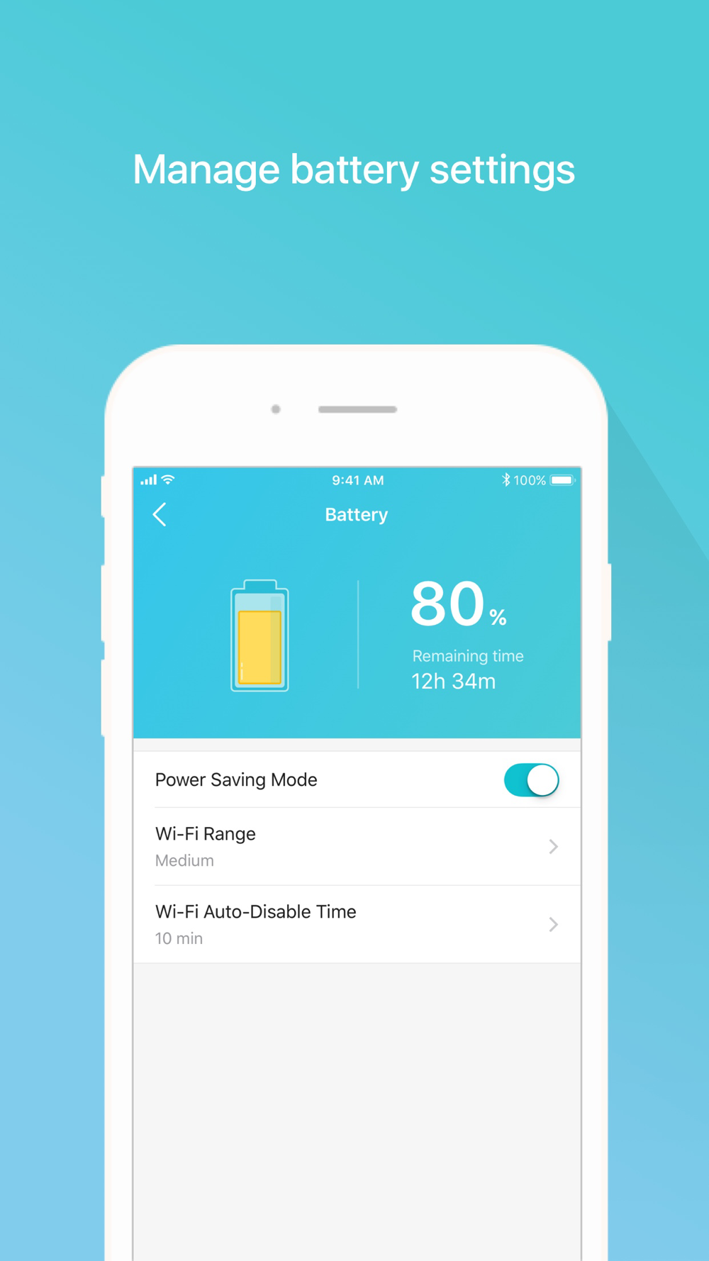 -Monitor your Mobile Wi-Fi's battery life in real-time and switch it to power saving mode.