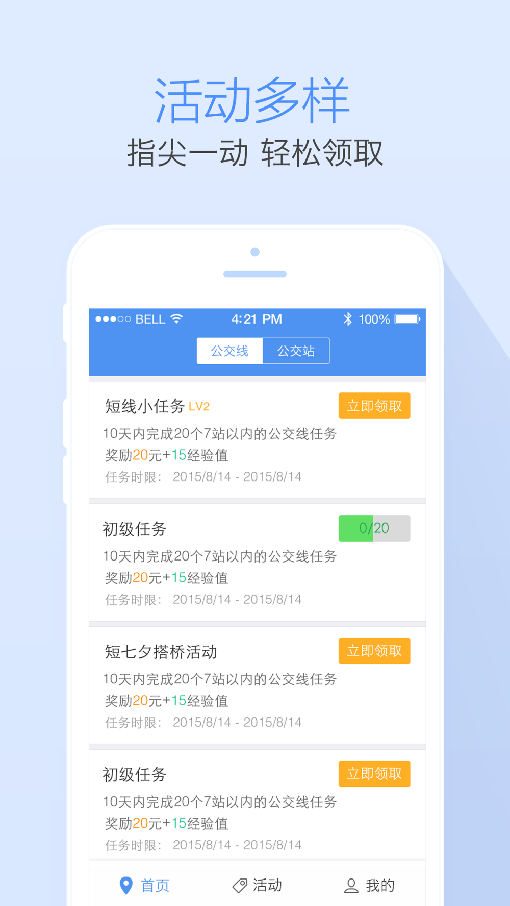 高德公交拍拍是高德公司旗下的一款拍公交任务赚钱应用,坐公交途中就可以轻松赚钱!您可通过乘坐公交车,拍摄公交站牌照片完成领取的公交任务,任务提交并审核通过后即可获得丰厚现金奖励。高德公交拍拍正在不断增加更多任务玩法,就等你来拍!