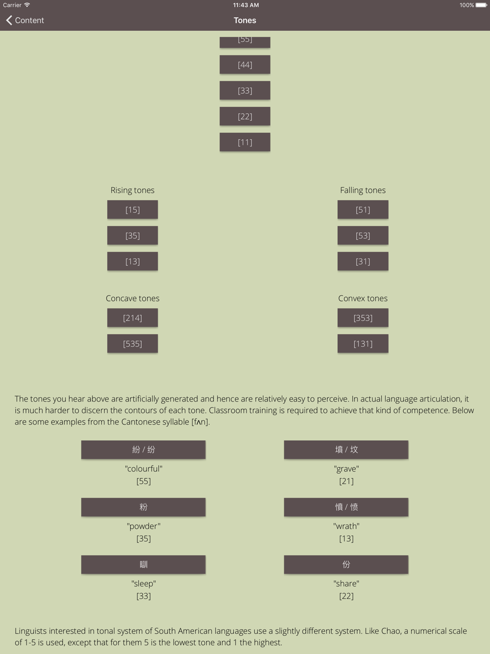 - Comprehensive coverage of the consonants, vowels and tonal symbols. Press on the symbols in the charts to see and hear them.