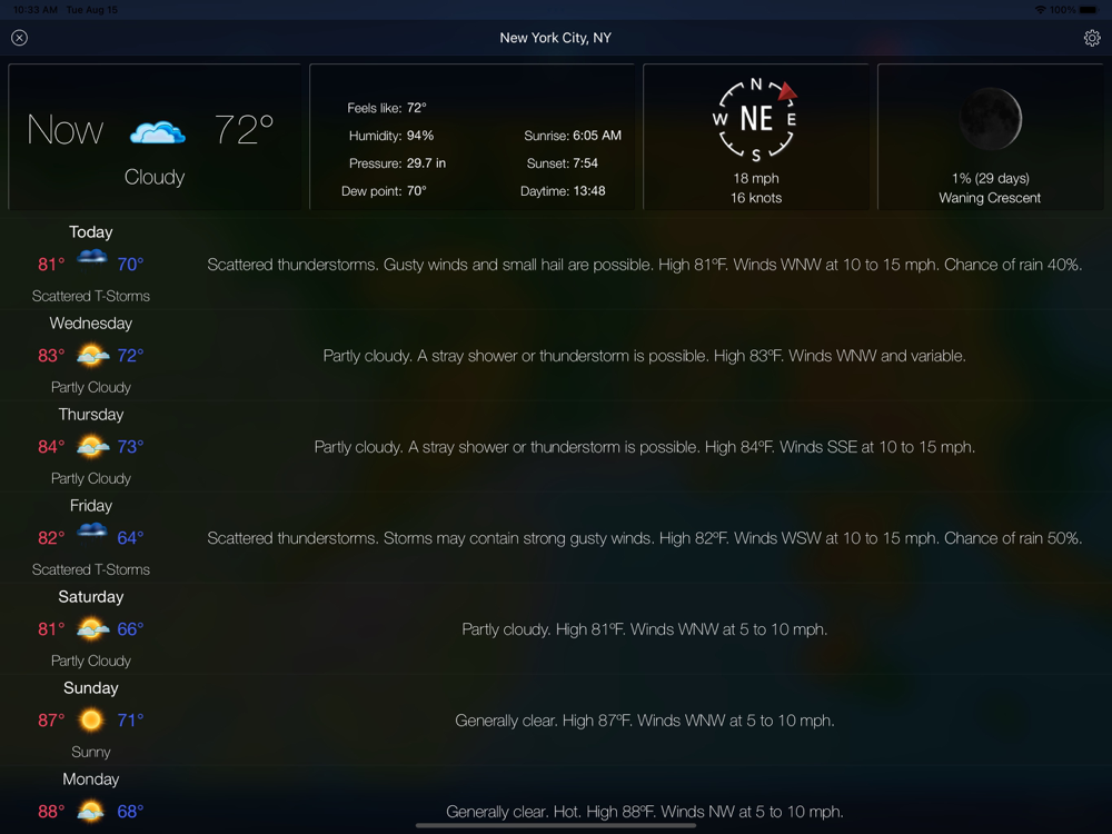 - Tap on each forecast day to show hourly weather