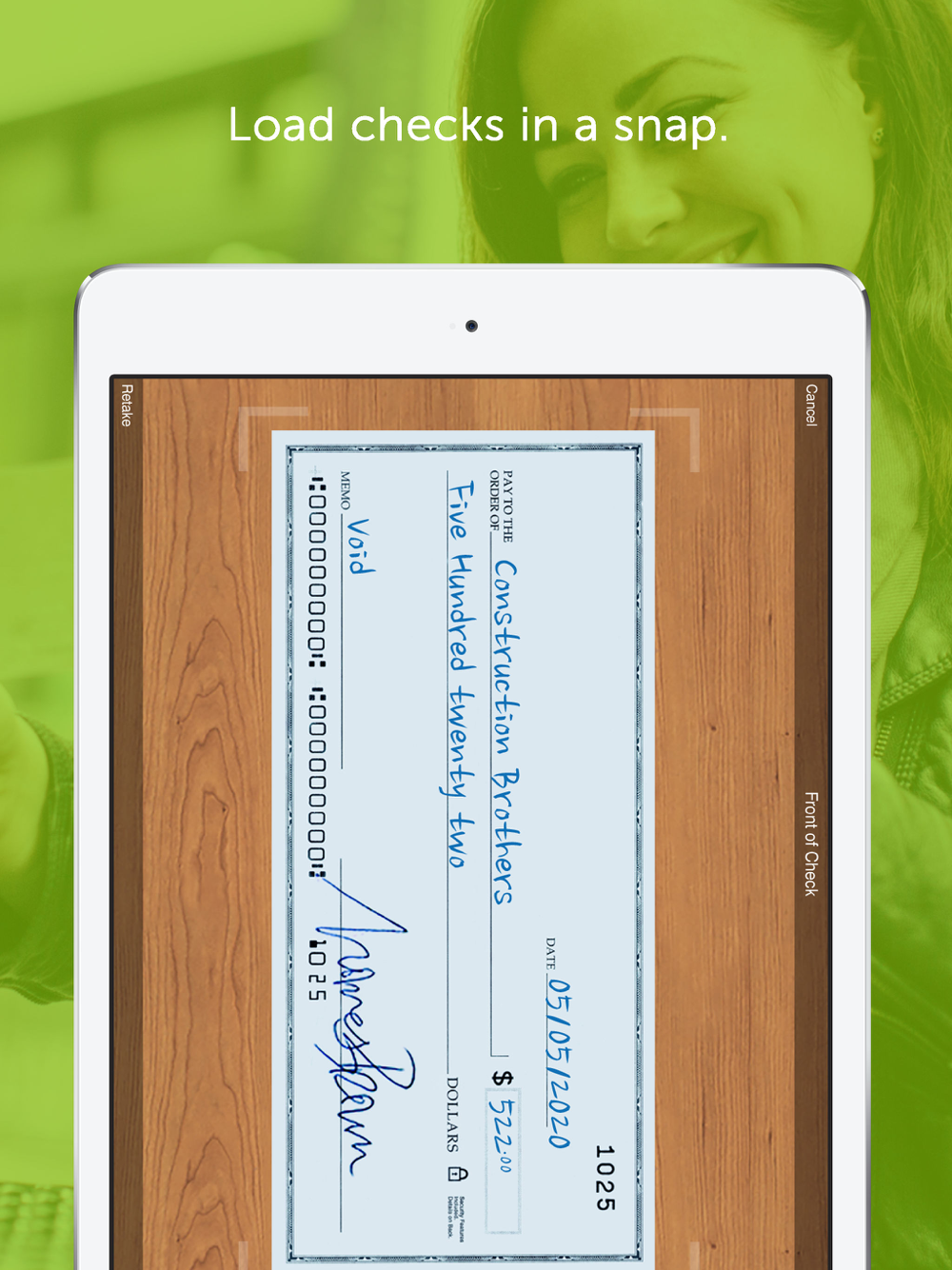 * Accept payments on the go. Load checks, cash, or credit and debit card payments to your Card Account.