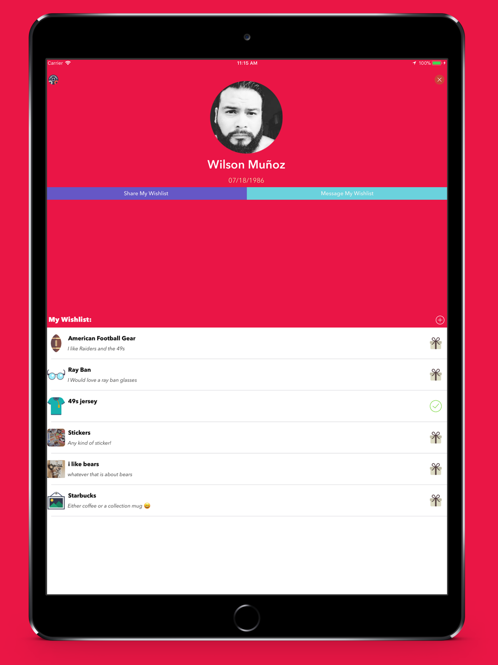 - When someone decides to give you a present from your list a "reserved" gift icon will appear.