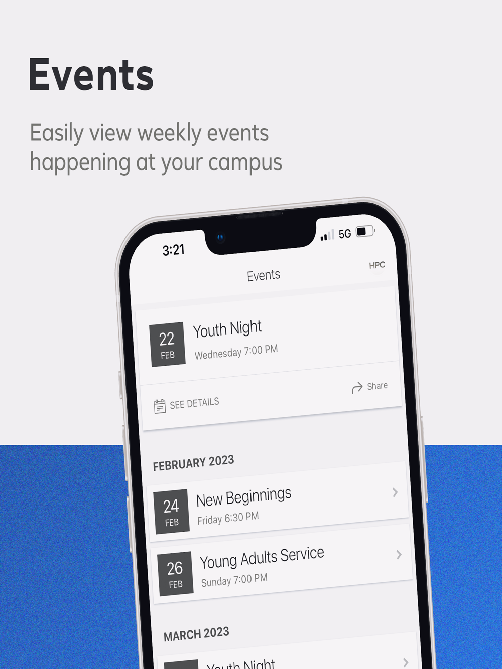 *Quickly view upcoming events and save them to your personal calendar