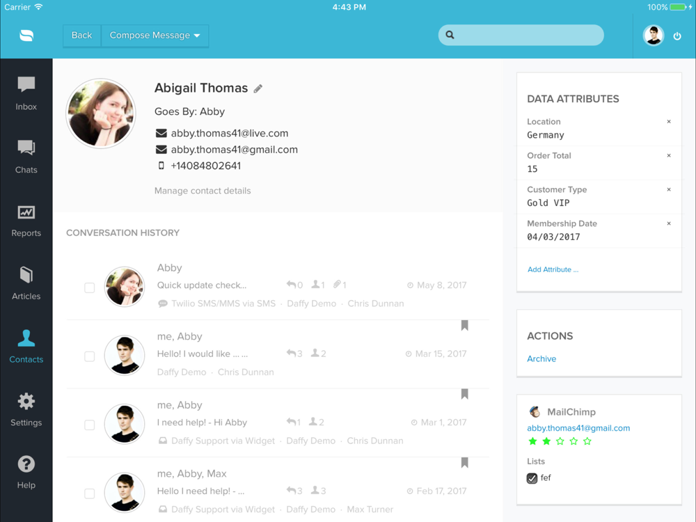 - Collaborate with your team with Presence, internal notes, and conversation forwarding