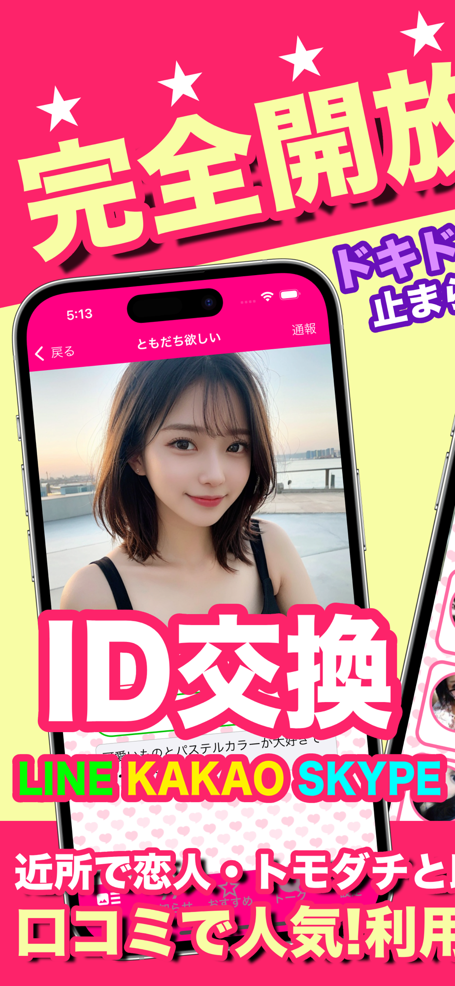 ・掲示板等でLINEやカカオトーク、スカイプ等のID交換OK!