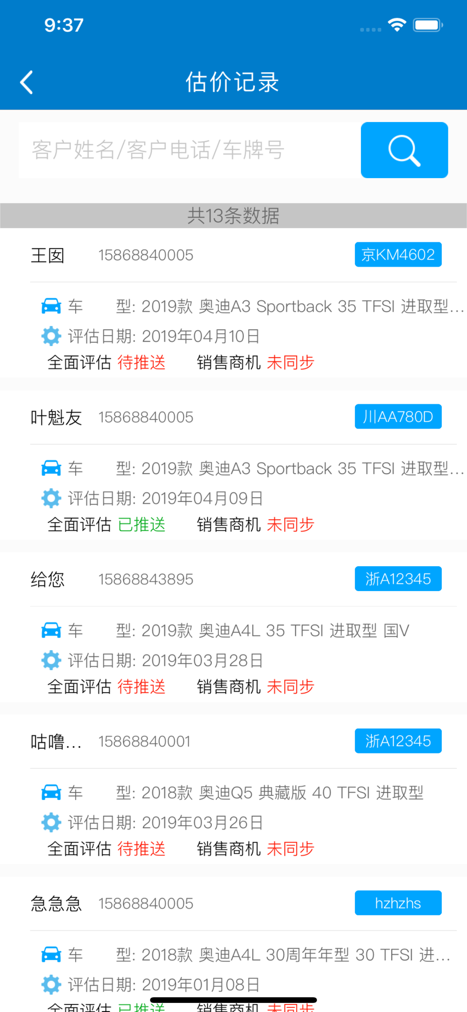 业务体系中快速估价模块:支持销售顾问在30秒内针对客户车辆形成专门快速估价报告,引起客户兴趣,提升评估和置换的意向;