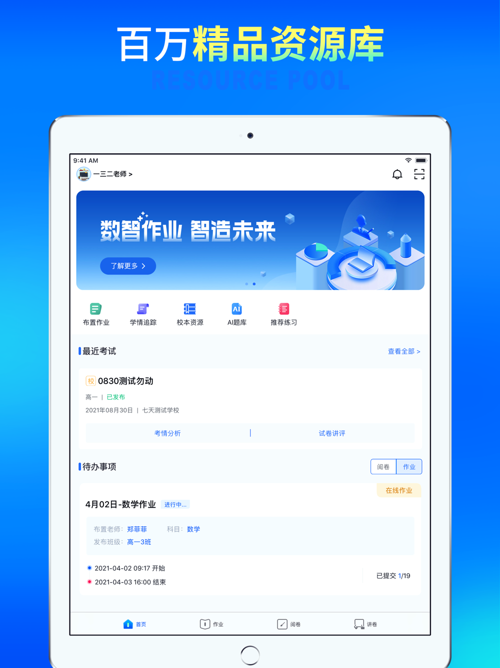 致力于协助老师解决线下教学场景,采用图像识别、计算机深度学习等人工智能核心技术,通过学习过程动态化数据采集和大数据智能分析,制定学生自适应学习资料和学习路径。支持阅卷多场景打分方式随意切换,阅卷轻松留痕,记录学生考试数据,精准分析和展示学生各小题答题情况,使智能评价实时伴随教学行为,为老师教学提供数据决策支持,实现大数据教学管理及数据智能驱动的精准教学。