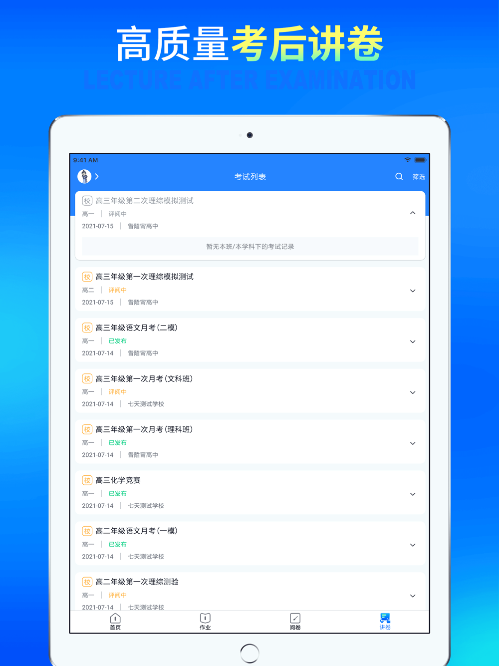 “七天网络”是一款教师必备教学助手工具,立足于真实教学场景,支持移动阅卷、布置在线/堂测作业、考试数据分析查看。