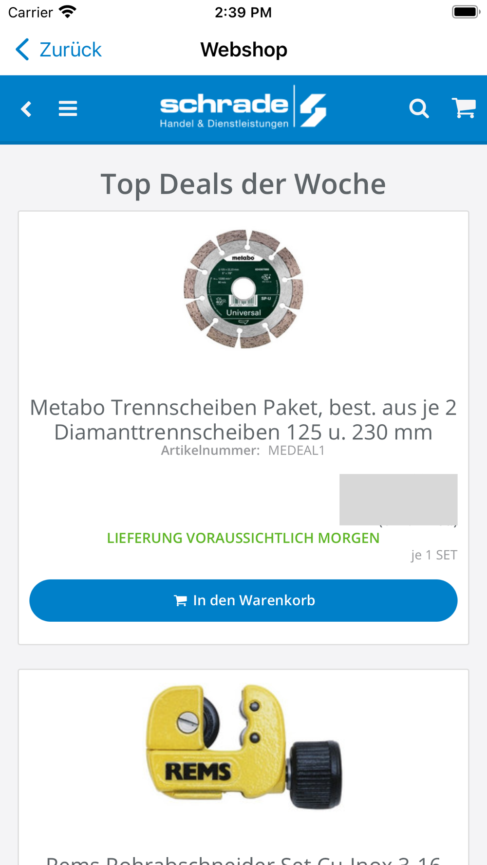 Schrade24 bietet Einblick in das gesamte Online-Sortiment der C. Schrade GmbH und ermöglicht die einfache und schnelle Artikelsuche sowie eine komfortable Bestellabwicklung. Um die Artikelsuche so einfach wie möglich zu gestalten, verfügt Schrade24 außerdem über eine Scanner-Funktion. Hierbei kann einfach der Artikelbarcode gescannt und der Artikel über Schrade24 bestellt werden.