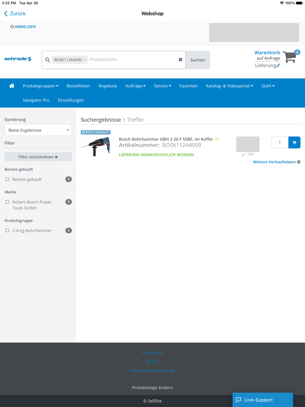 Darüber hinaus bietet Schrade24 umfangreiche Customer-Self-Services wie beispielweise kundenspezifische Angebote und Aufträge.