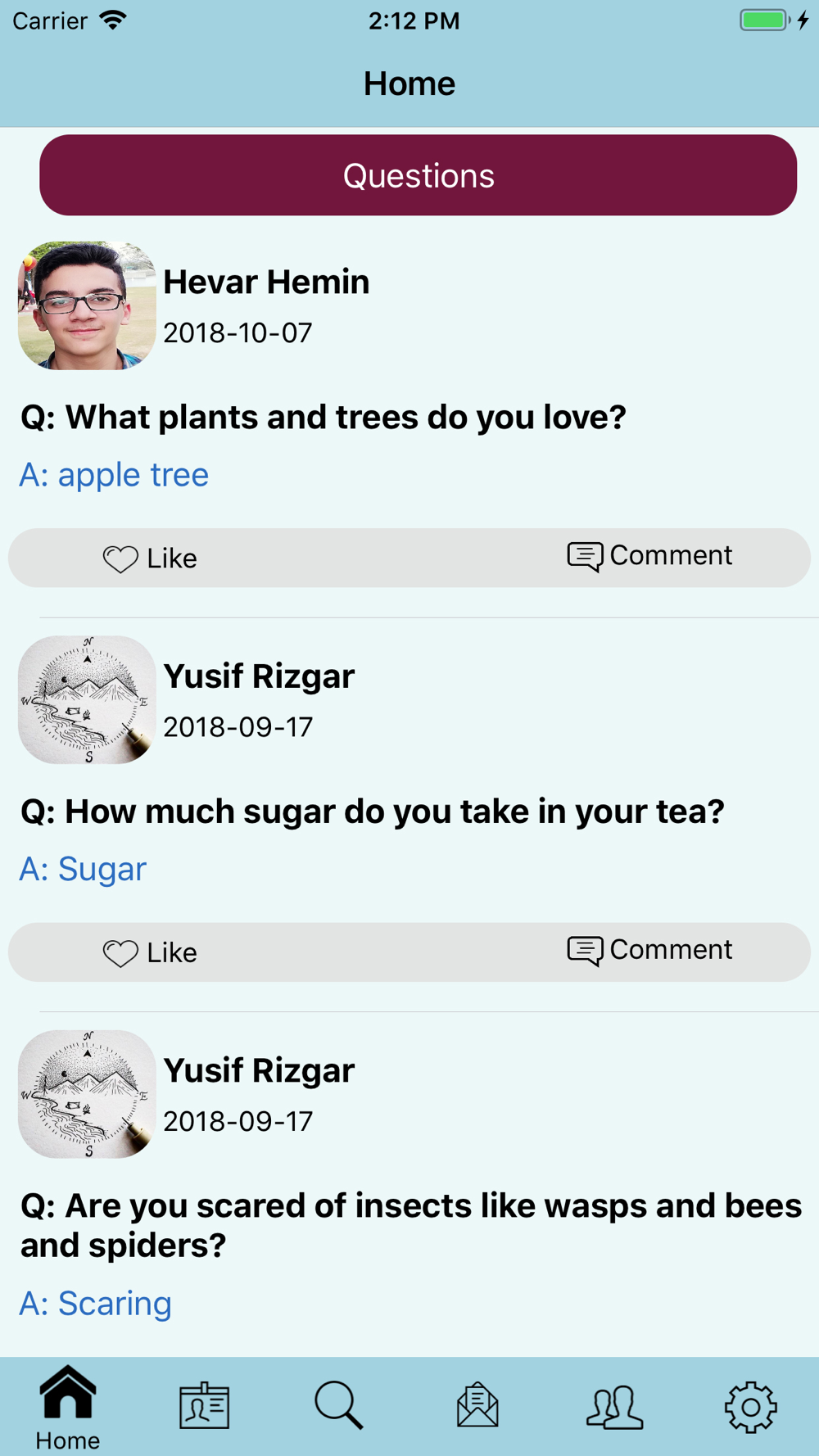 The main aim of this app is to build a social networking application to share personal information between friends. The app allows users to answer different types of personal questions about what they like and dislike.