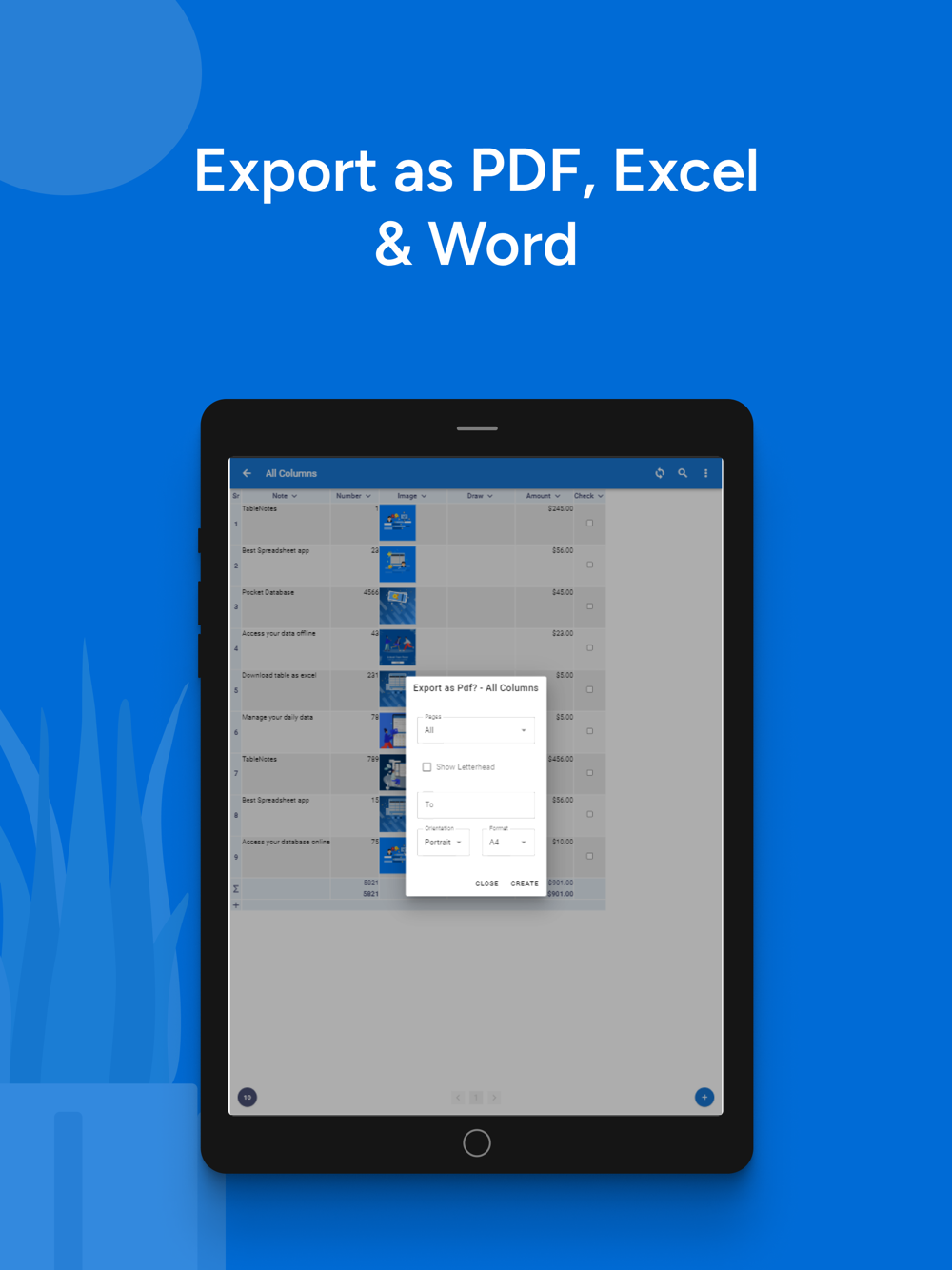 PDF and Excel Reports: Create and share professional reports with custom headers and footers.