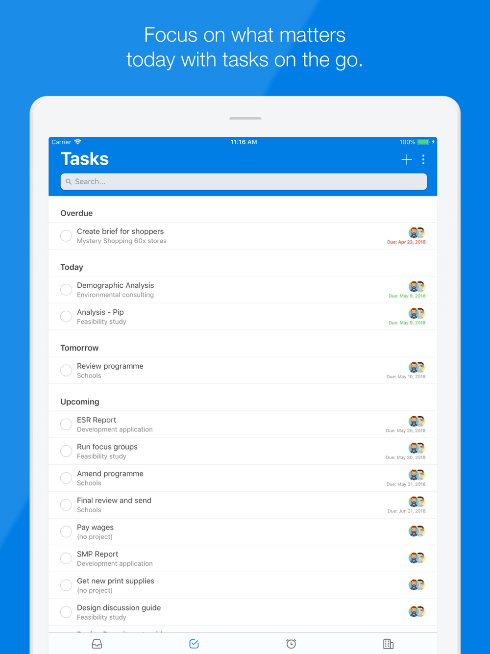 Create, assign and manage your and your team’s tasks.