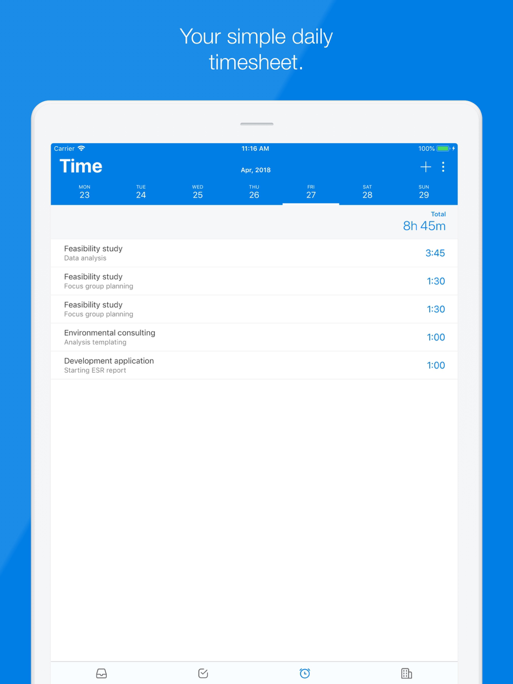 Track time easily on the go with our simple mobile timesheet.