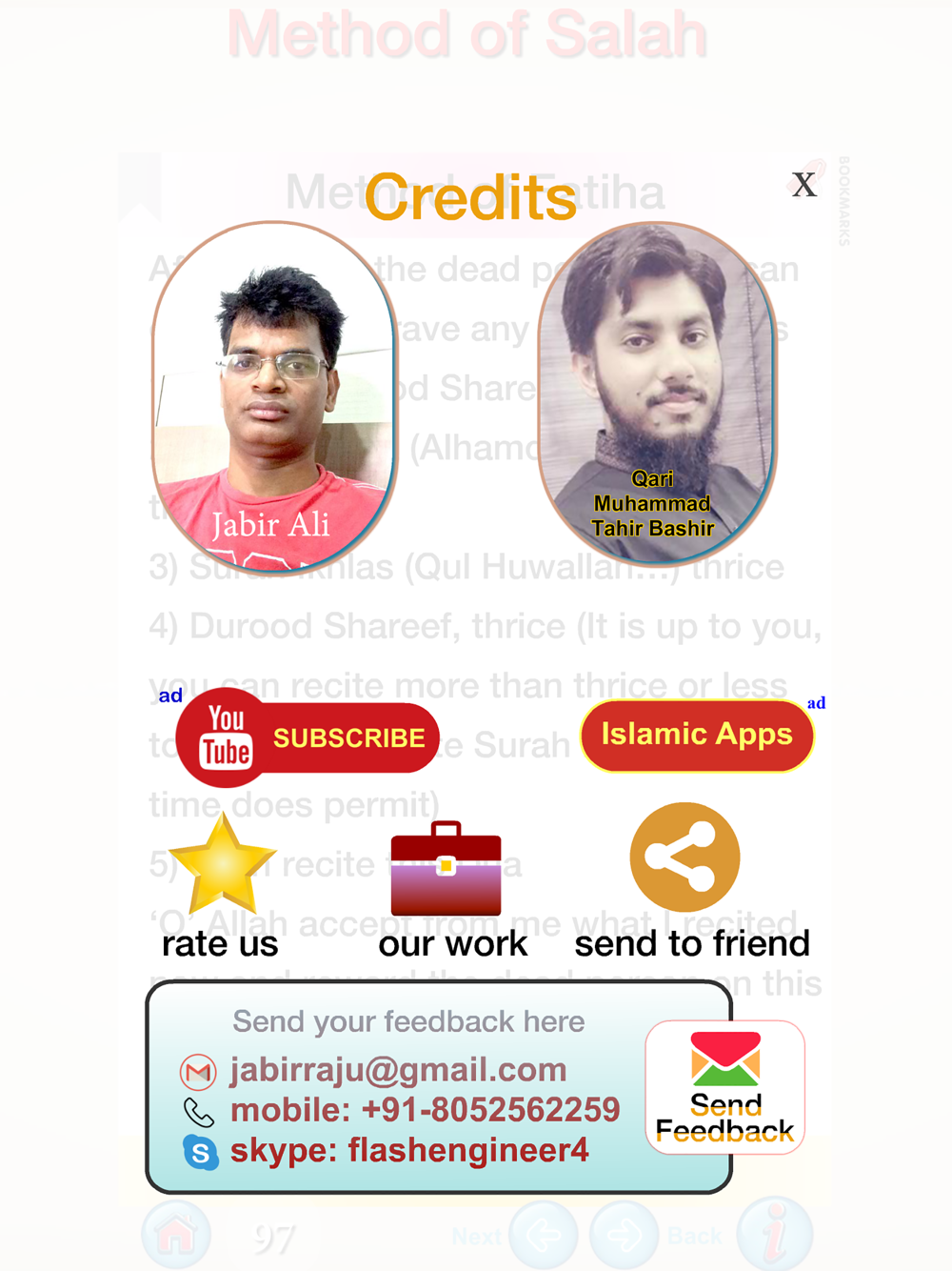 This application legitimately portrays the manners and right method for performing Salah. App Content is verified by Mr. Shadab Ansari, Hafiz Muhammad Nauman, and Qari Muhammad Tahir Bashir.