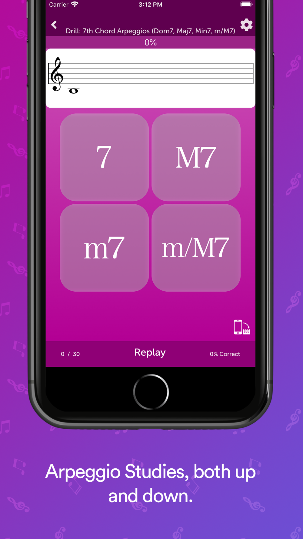 ⁃ Give your responses with on-screen piano keyboard or large easy to push buttons.