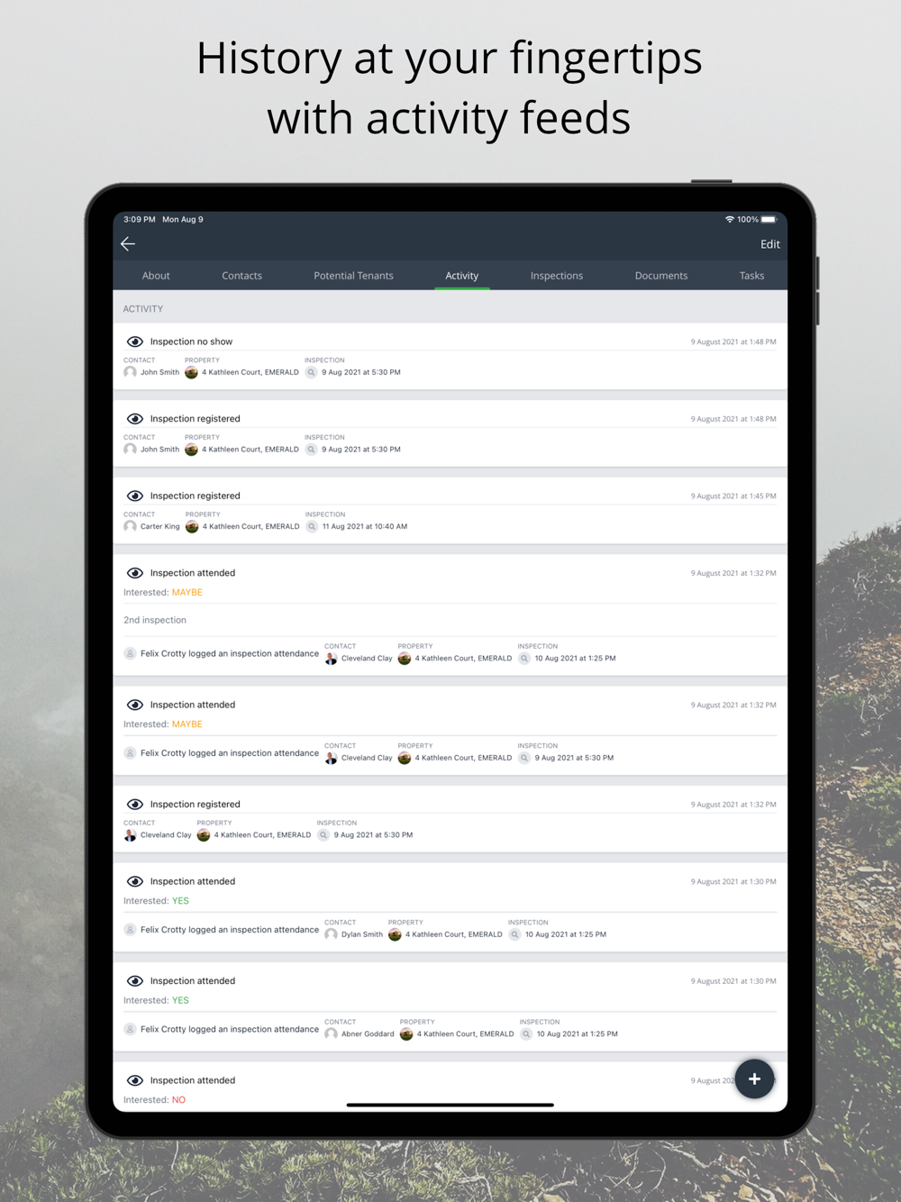 Manage your contacts, relationships, property relationships, activity history and tasks.