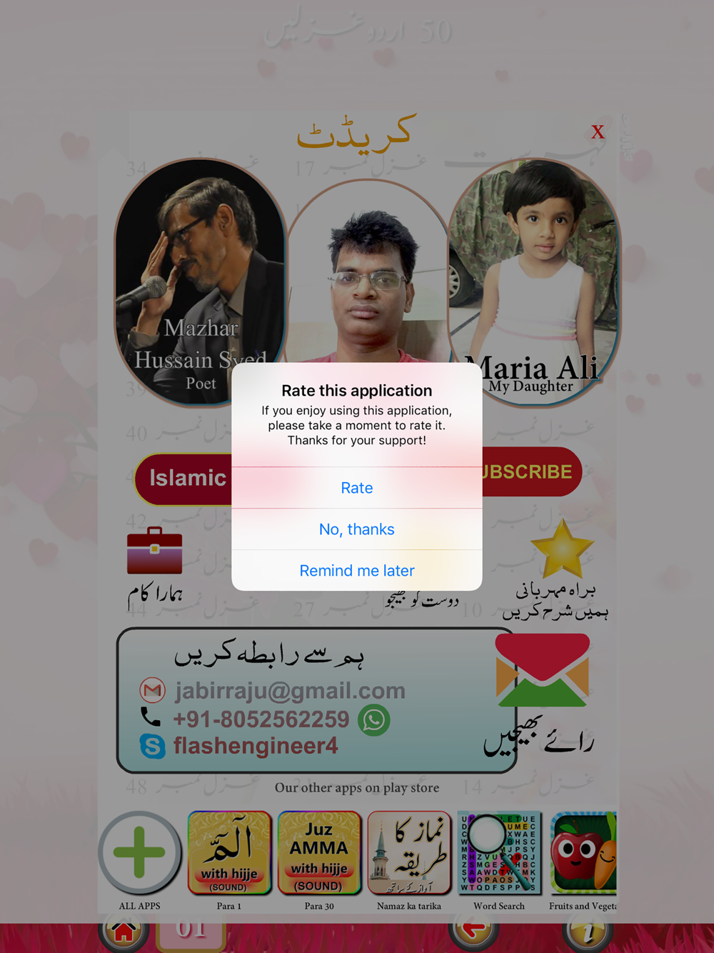 Mazhar Hussain Syed Shayari - 50 Famous Poetry of Mazhar Hussain Syed in Urdu, Read latest Mazhar Hussain Syed Poet. Sound is added for 50 Gazals in the app via Laila Ayat Ahmad. App preview can be viewed at https://www.youtube.com/watch?v=D4k3EQCuX2w