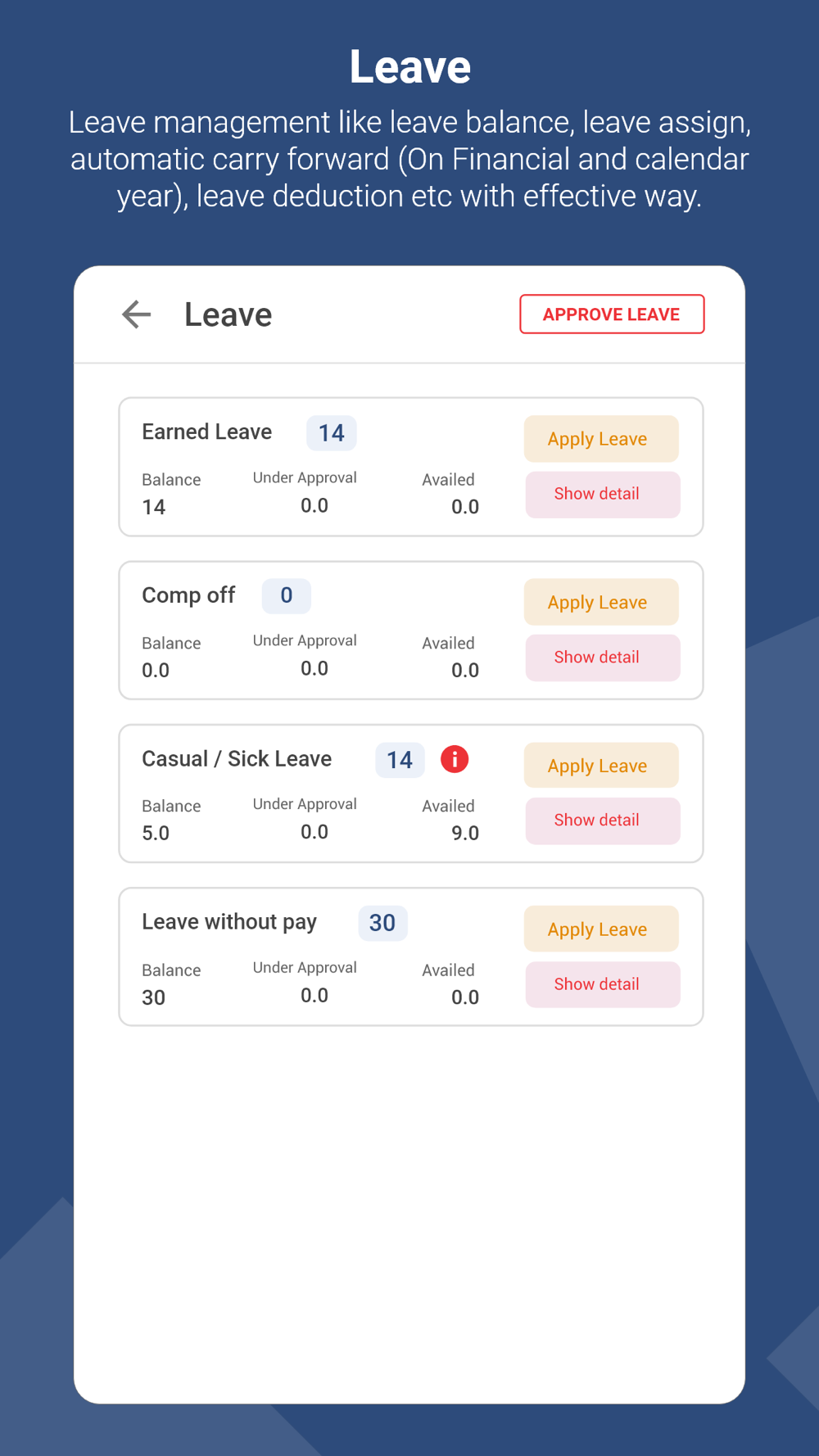 Leave Management by Department wise, State wise, Branch wise (Leave Type, Comp-off, Leave Assign, Leave Apply/Approve, Leave Balance, Leave Deduction by HR etc)