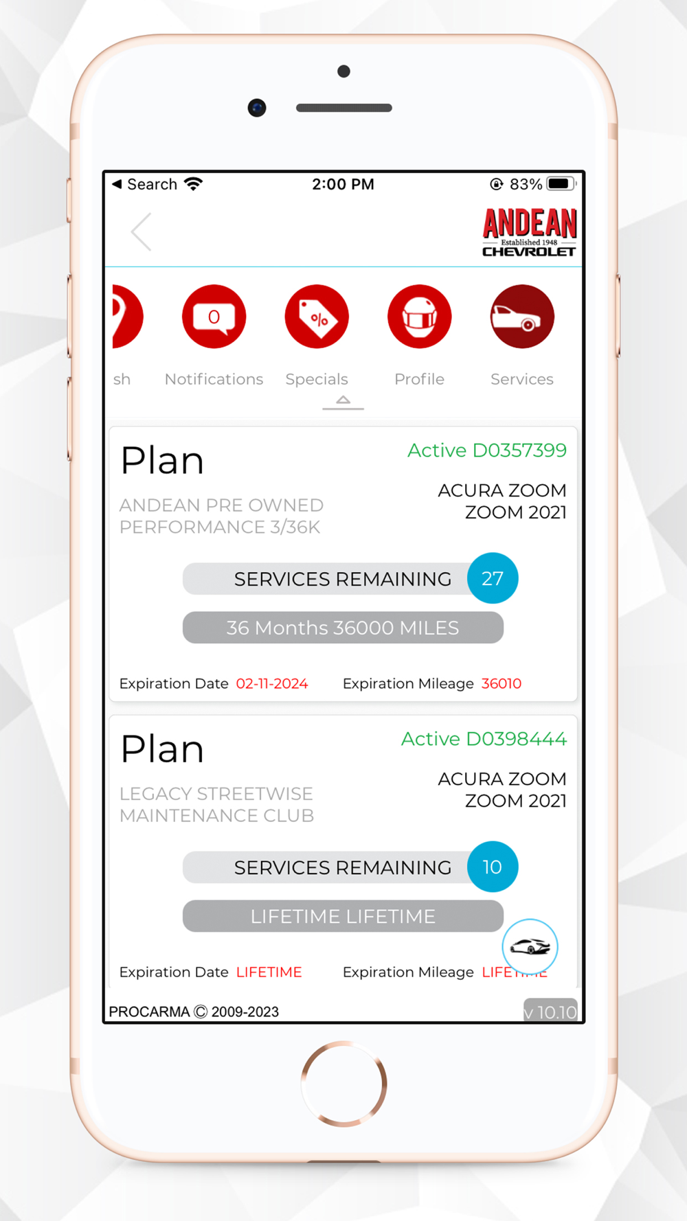 The ANDEAN CHEVROLET app provides a portal for users to: