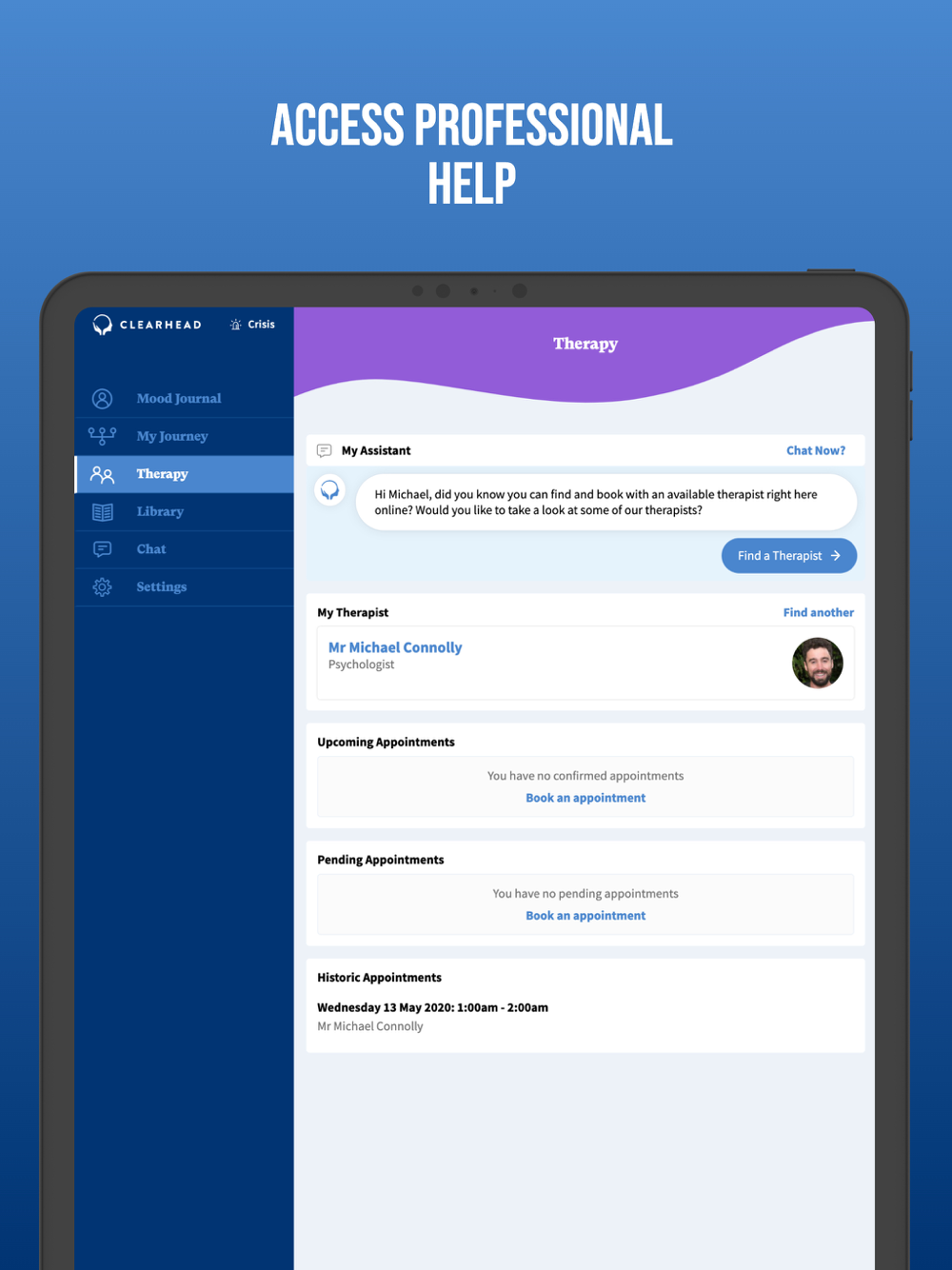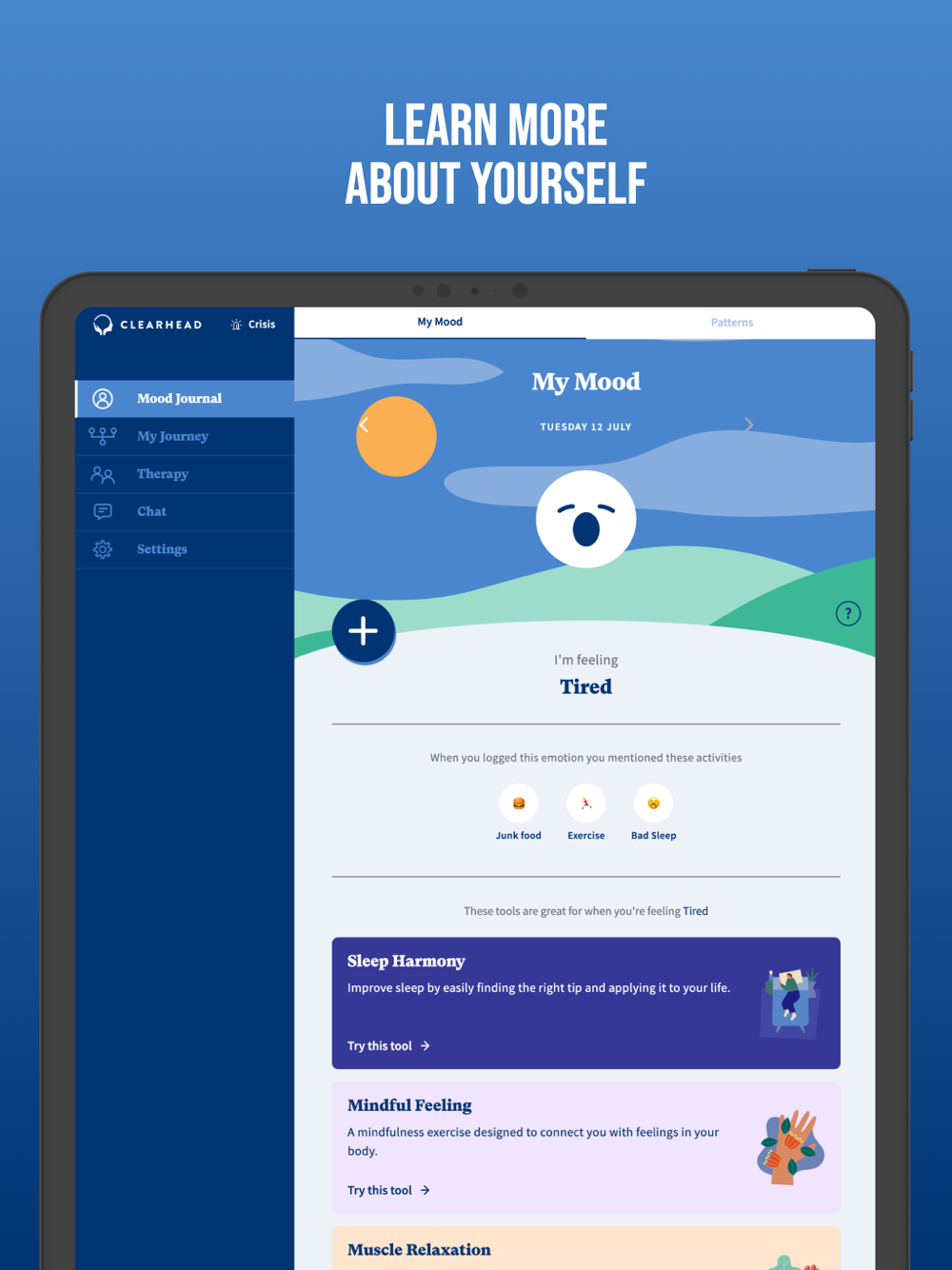 Clearhead is your personal guide to wellbeing. It is a free, one-stop-shop mental health platform (app + website). We help you achieve mental wellbeing by understanding your challenges and providing you with personalised support and access to free resources and self-management tools.