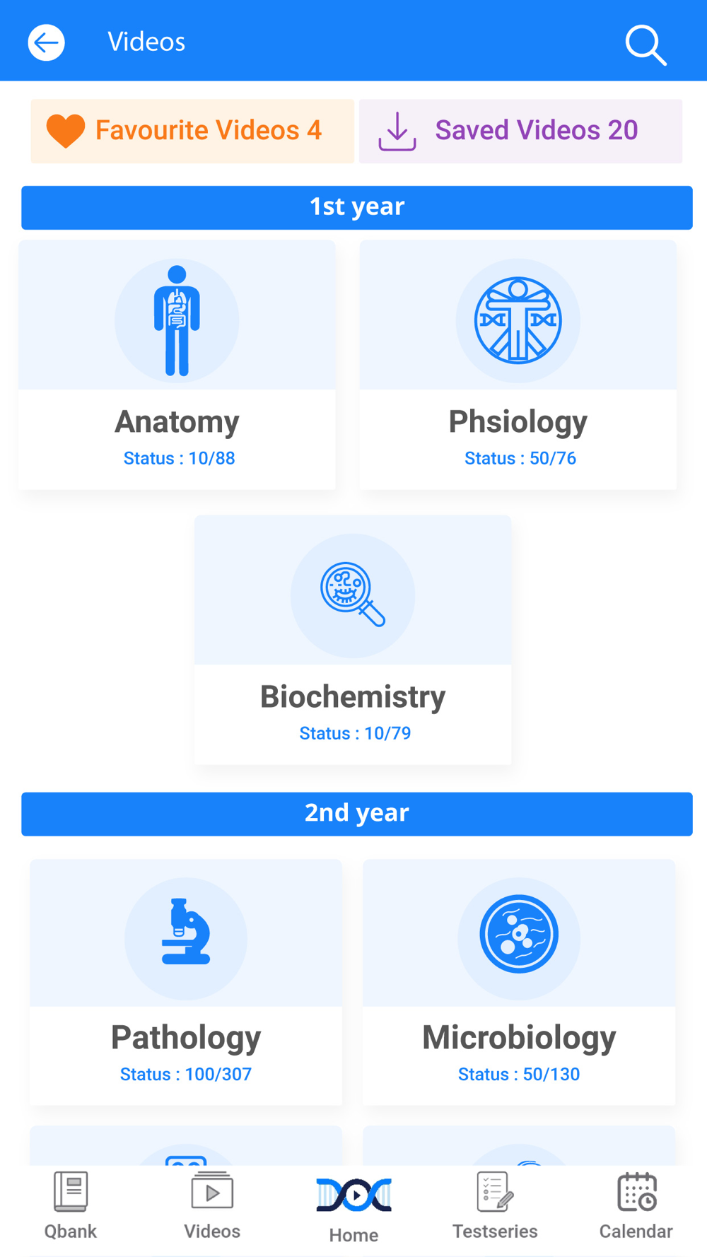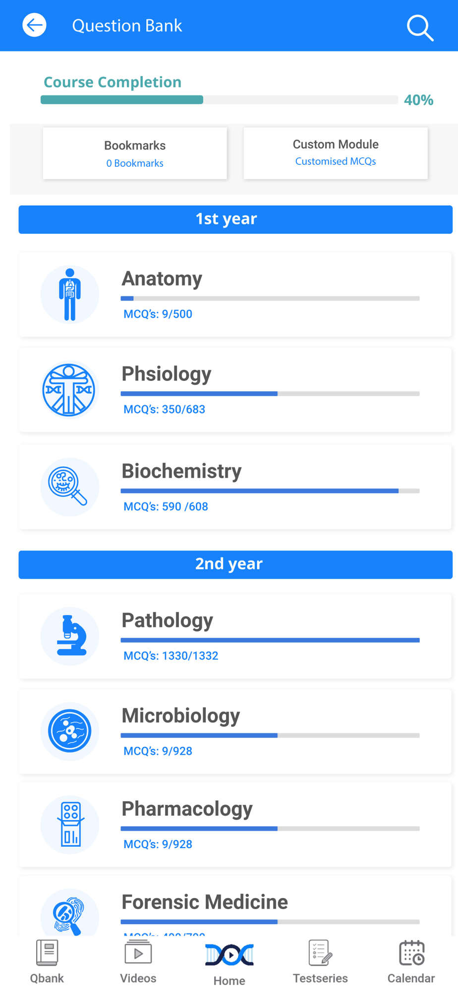 4) Test and Discussion Videos in all 19 subjects, on high yield topics and previous years questions