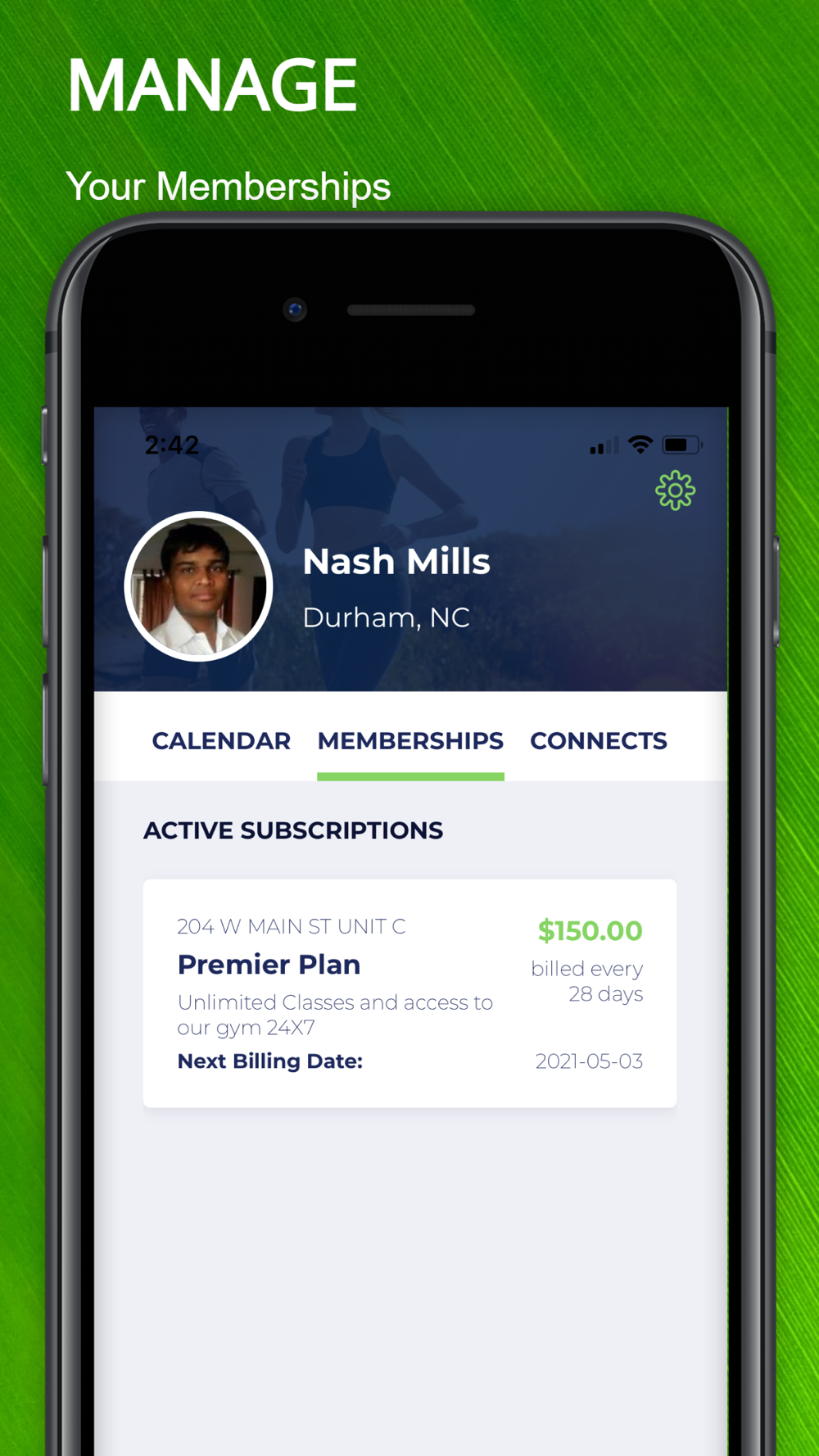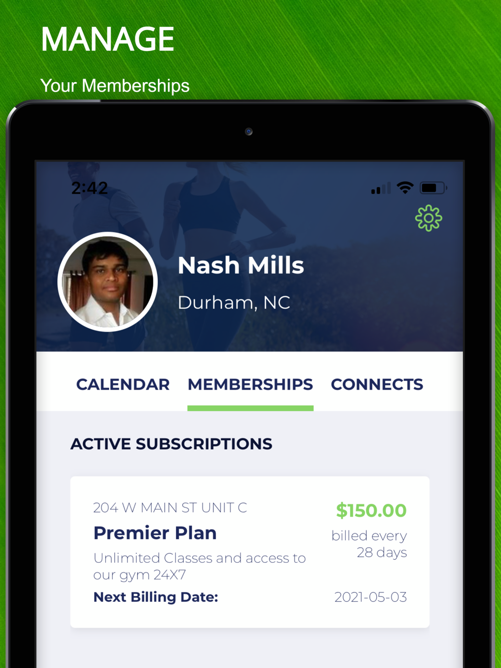 You can search and sign-up for classes, view announcements, manage your memberships and connect with other members at your facility