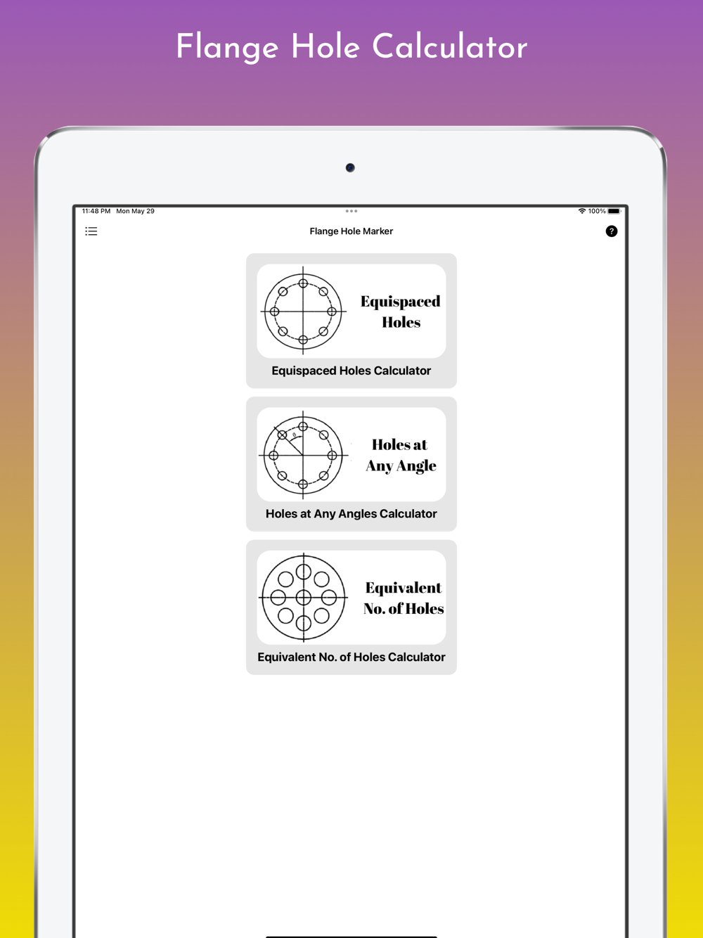 Flange Hole Marker is used to calculate flange hole markings of equispaced holes, Holes at any Angles and Equivalent No. of Holes.