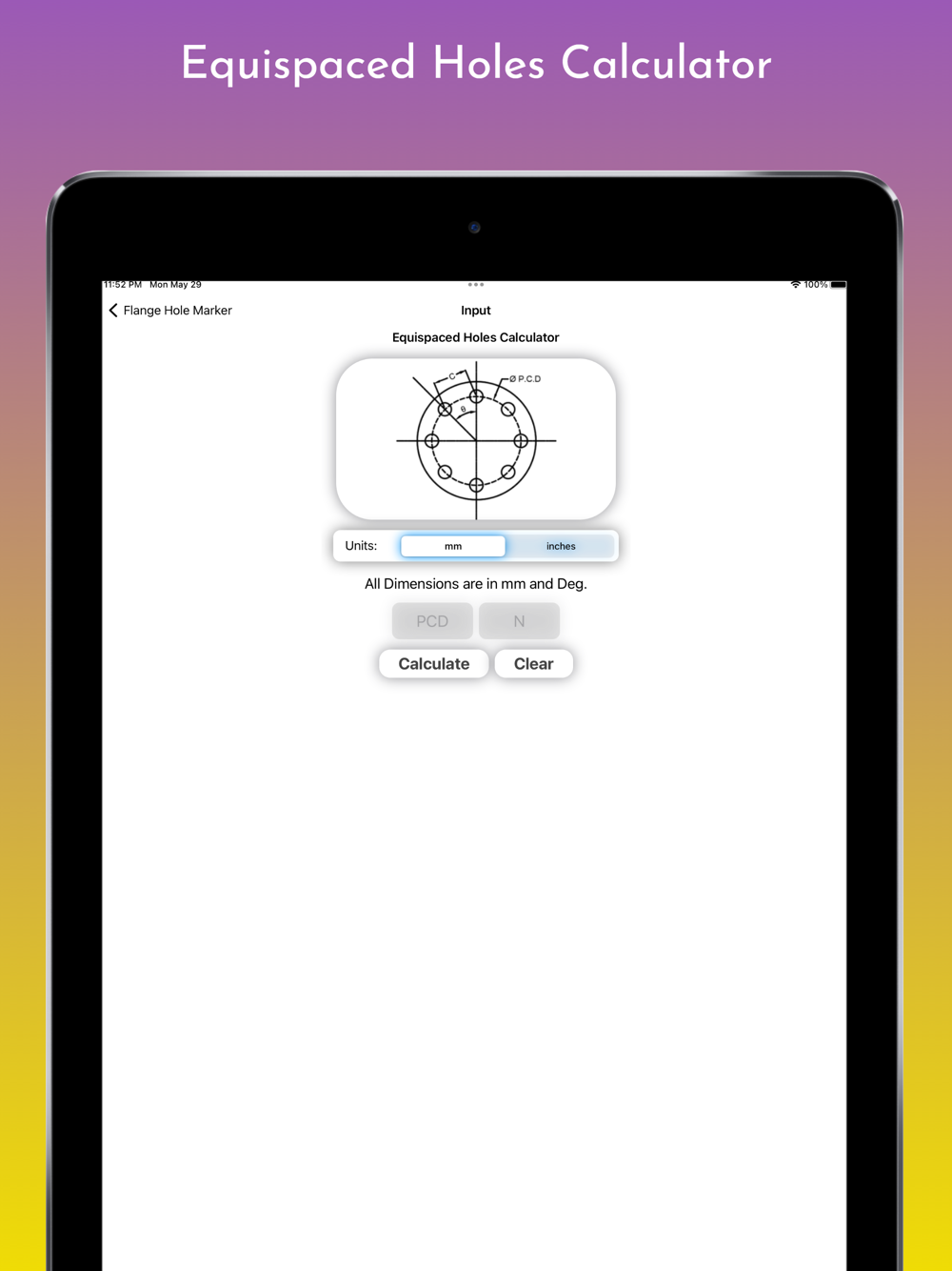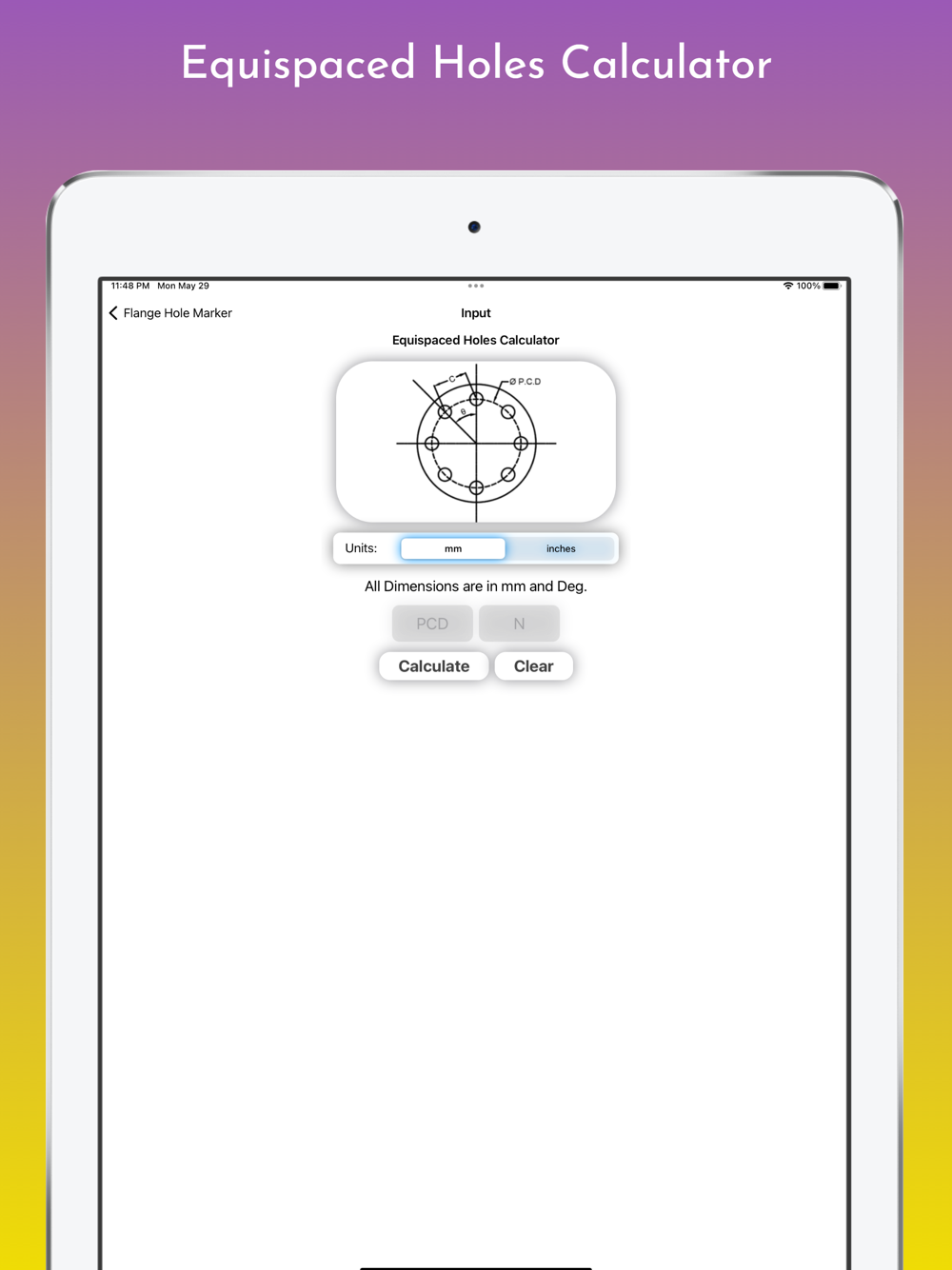 This app is very useful for those who are dealing with flange hole marking or bolt hole marking on flanges or any other application where we had to divide the required no of parts on pitch circle diameter.